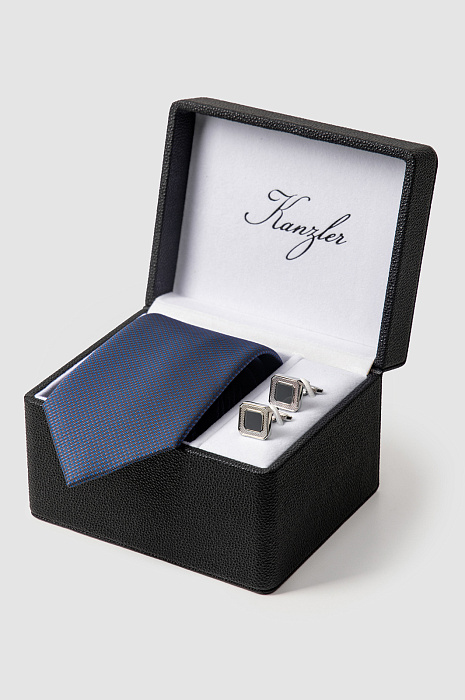 Подарочный набор (галстук+запонки), цвет синий, цена 7 990 руб., код 270462 - купить в Тюмени в интернет-магазине KANZLER