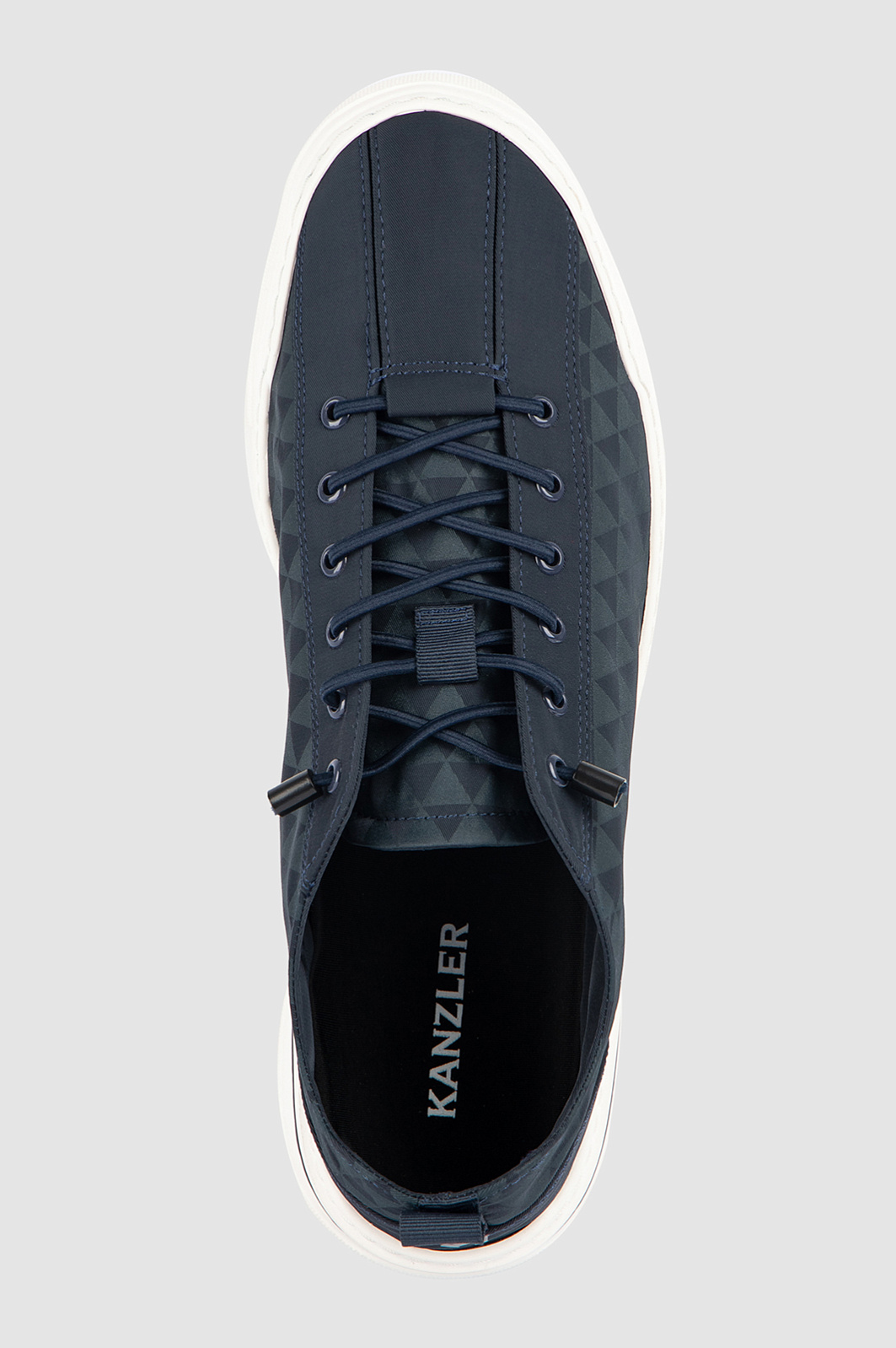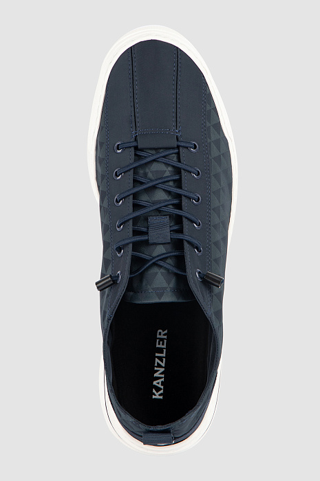 Кеды KANZLER из синего текстиля созданы для жителя мегаполиса. Это стильная комфортная городская обувь с актуальным дизайном, графичным паттерном и оригинальной шнуровкой. Удобная пара позволяет динамично перемещаться по городу и будет уместна в офисе, на прогулке, в поездке и путешествии. Верх и стелька сделаны из прочного текстиля. Слегка утолщенная белая подошва с тонкой синей полоской — из плотной упругой резины, которая амортизирует шаг. Петелька на пятке служит для удобства при надевании.