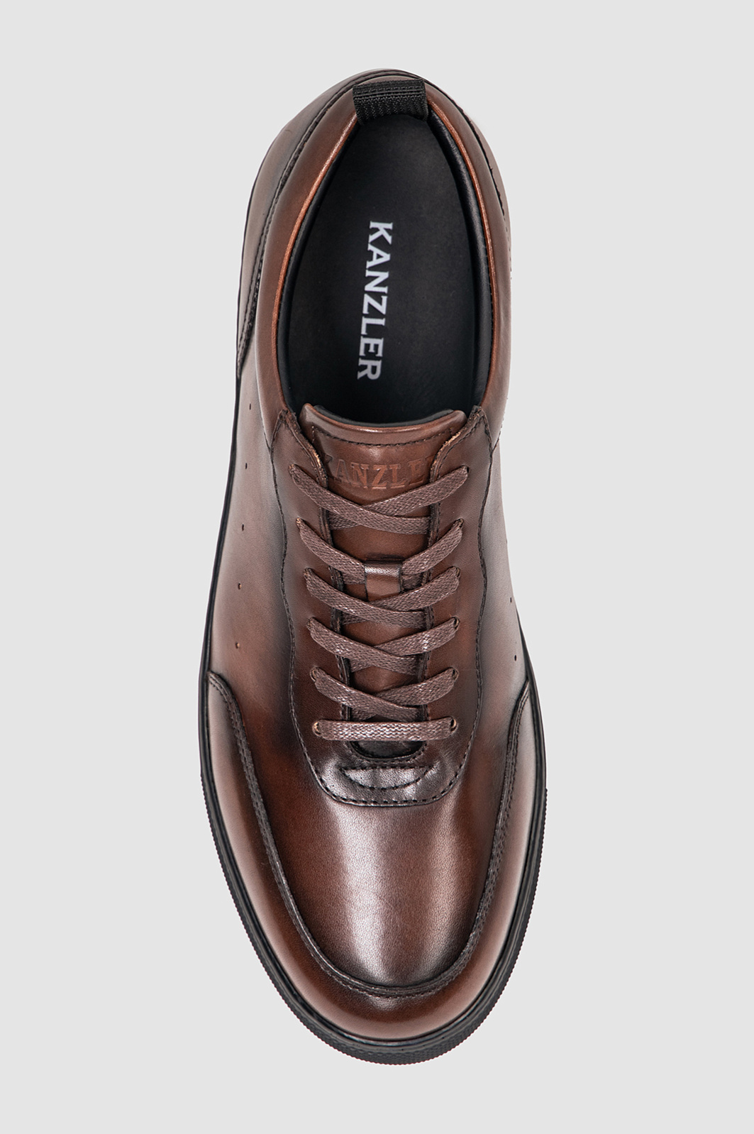 Городские кожаные кеды KANZLER глубокого коричневого оттенка с патиной по линии швов и черной резиновой подошвой — идеальный баланс между уличным стилем и зрелой эстетикой. Сохраняя спортивных дизайн, они обрели статус роскошной обуви благодаря верху из превосходной качественной гладкой натуральной кожи и эффектному блеску на мыске и заднике. Пара оживит образ с классическим костюмом и легко впишется в повседневный образ с джинсами и чиносами. Кожный верх пропускает воздух и адаптируется к форме стопы. Со временем кеды становятся только мягче, обеспечивая индивидуальную посадку и комфорт.