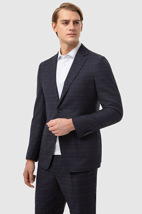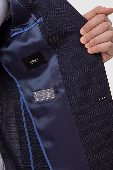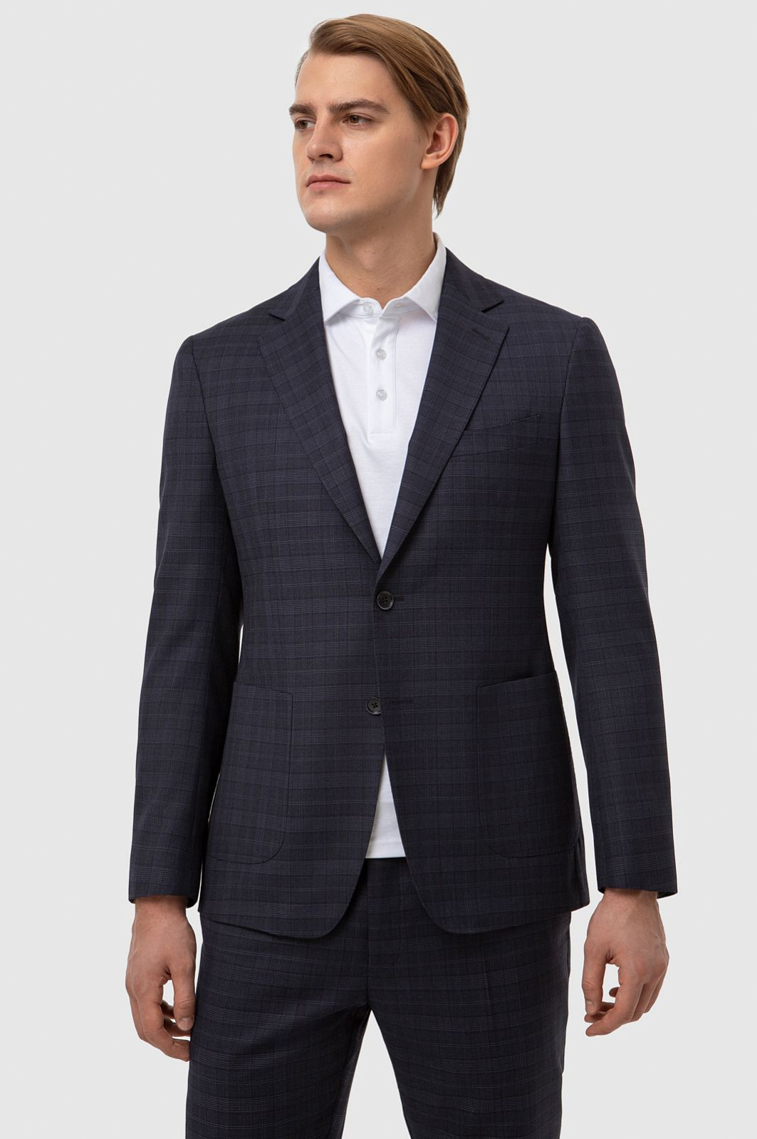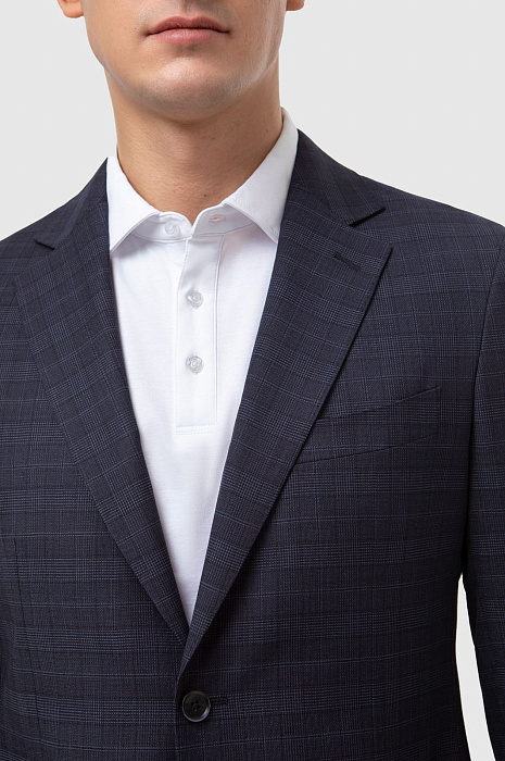Пиджак из шерсти в клетку с водоотталкивающей обработкой, устойчивый к загрязнениям, цвет синий, цена 16 990 руб., код 267077 - купить в Тюмени в интернет-магазине KANZLER