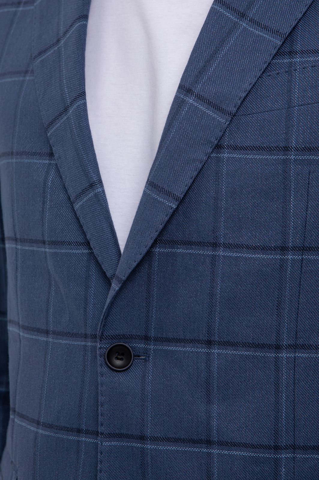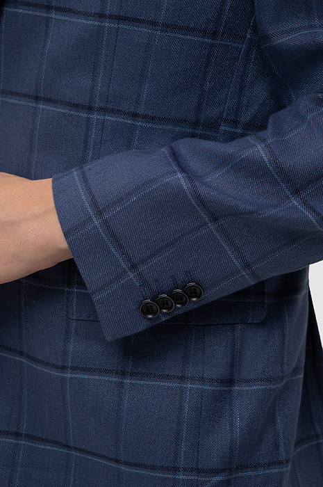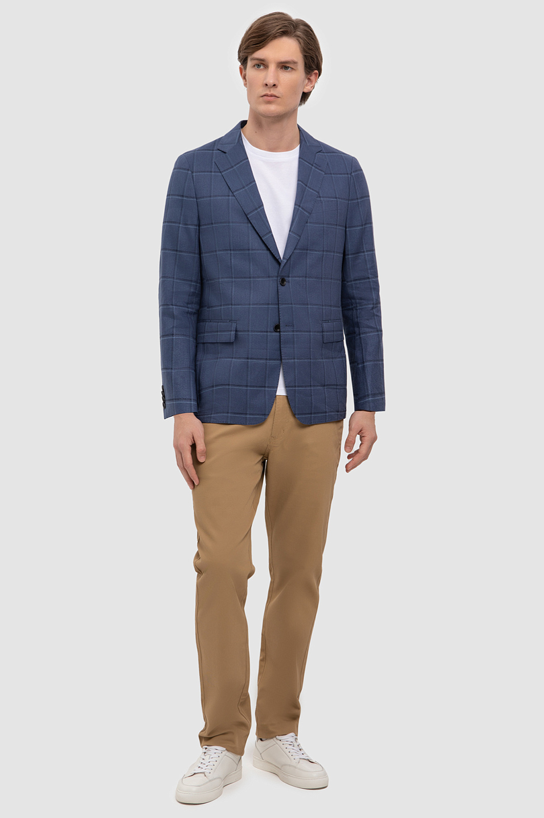 К созданию однобортного пиджака в благородном синем оттенке дизайнеры KANZLER подошли с особым вниманием и учли современные тенденции к комфорту, натуральным материалам и актуальным узорам. Пиджак получился особенно комфортным благодаря натуральному смесовому материалу: для изготовления модели с узкими лацканами и карманами с клапанами выбрали мягкий фактурный трикотаж из дышащего хлопка, усиленного волокнами прочного полиэстера и эластичного спандекса. Модель идеально садится по фигуре и не сковывает движения. Пиджак в стиле кежуал с облегченной подкладкой и мягкой линией плеч привлекает внимание благодаря крупному узору в клетку и гармонично сочетается c белой футболкой и однотонными брюками или шортами. Параметры модели: рост 191, 97-77-99 Размер на модели: 50