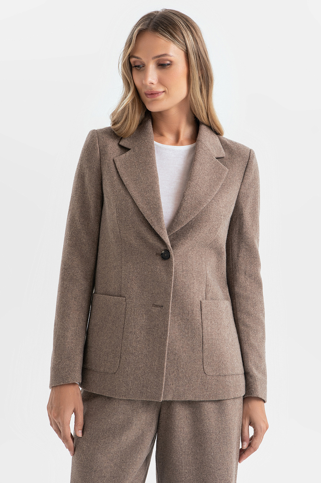Элегантность – то, что никогда не выходит из моды, и изящный женский пиджак KANZLER – тому подтверждение. Лаконичный выверенный крой, спокойный универсальный цвет, мягкая фактура – компоненты, из которых складывается модель, которая будет актуальна на протяжении многих сезонов. Прочный и долговечный смесовый материал отлично держит форму, устойчив к образованию катышек и приятен на ощупь. Благородный светло-коричневый оттенок поддерживает тренд на природную гамму и позволяет сочетать пиджак со многими элементами гардероба. Рекомендуем дополнить модель брюками палаццо из такого же материала, светлым джемпером, обувью и аксессуарами из натуральной коричневой кожи. Параметры модели: рост 180, 87-61-91 Размер на модели: S