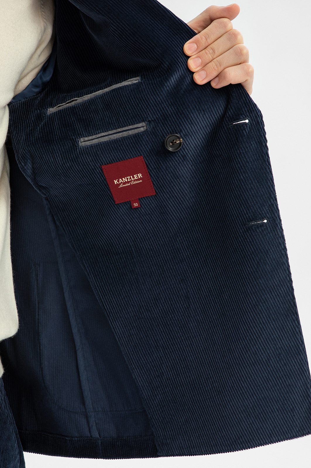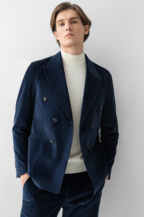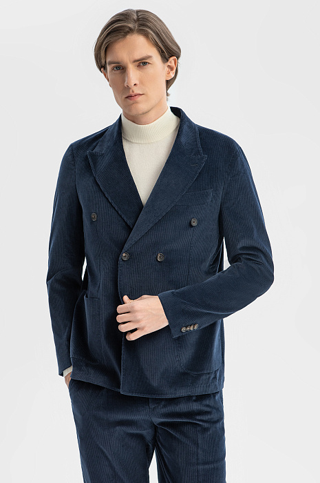 Пиджак из вельвета Duca Visconti Di Modrone, лимитированная коллекция, цвет синий, цена 24 990 руб., код 269371 - купить в Тюмени в интернет-магазине KANZLER