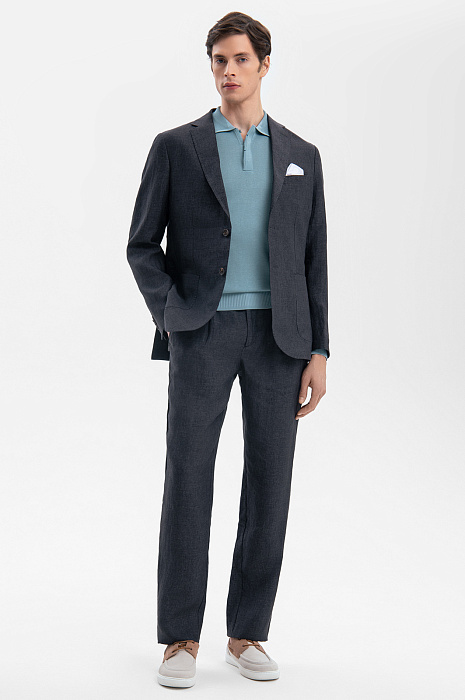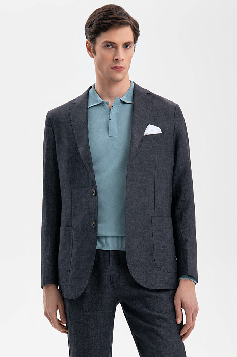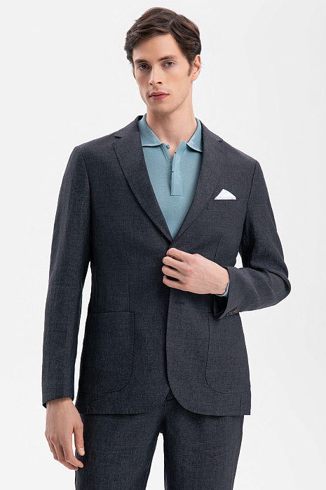 Темно-серый пиджак KANZLER изо льна — украшение лимитированной коллекции. В нем сочетается современный дизайн и высшая степень утонченного классического стиля, проверенного временем. Облегченная модель прилегающего кроя с накладными карманами и двумя шлицами сзади идеально подходит для теплого межсезонья и лета. Высококачественная ткань, произведенная в Италии старинной фамильной мануфактурой Vitale Barberis, — узнаваемая кончиками пальцев роскошь. Ее отличает прочность и естественная фактурность. Натуральные гипоаллергенные волокна льна поддерживают циркуляцию воздуха и создают освежающее ощущение в теплые дни. Параметры модели: рост 189, 91-78-95 Размер на модели: 50