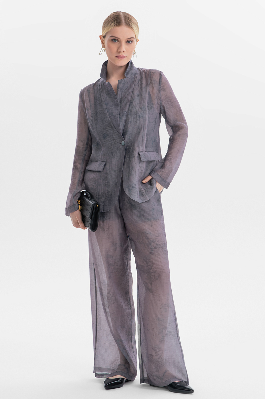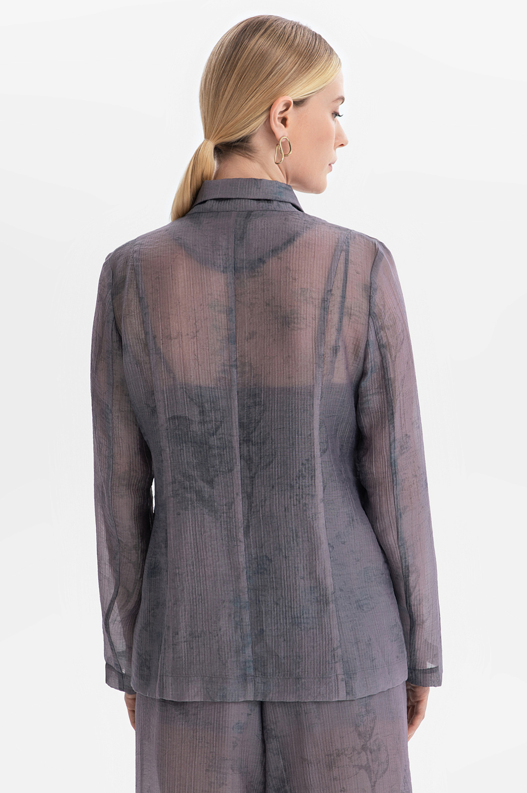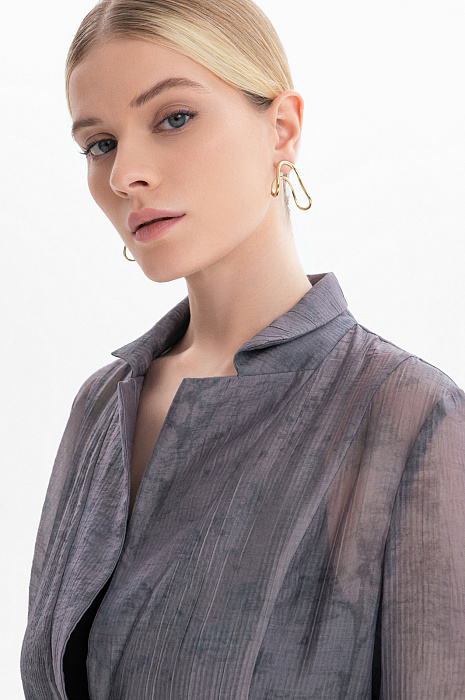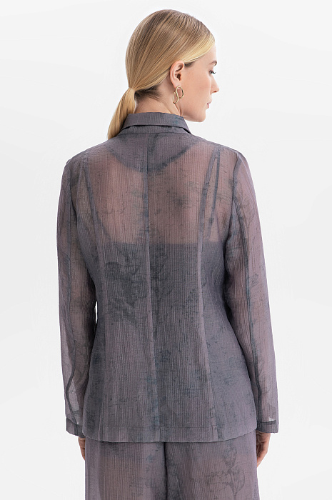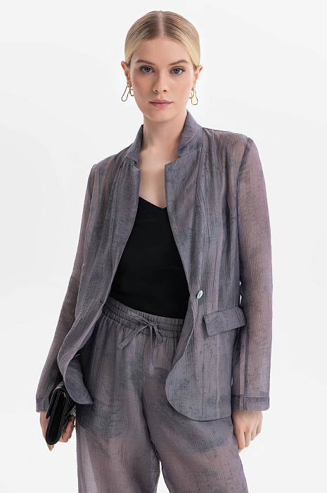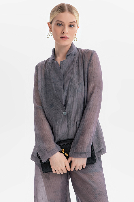 Пиджак KANZLER из серого полупрозрачного фактурного тенсела с легким растительным принтом создает флер таинственности, балансируя на грани видимого и скрытого. Это стильная и роскошная вещь для повседневной жизни и вечерних выходов. Слегка приталенный крой и мягкие очертания подчеркивают достоинства женственной фигуры. Красивая фактурная ткань окутывает тело плотной дымчатой вуалью. Смесовый материал сделан из мягкого нежного тенсела, который хорошо пропускает воздух и сохраняет естественное тепло тела, и прочного износоустойчивого полиамида.