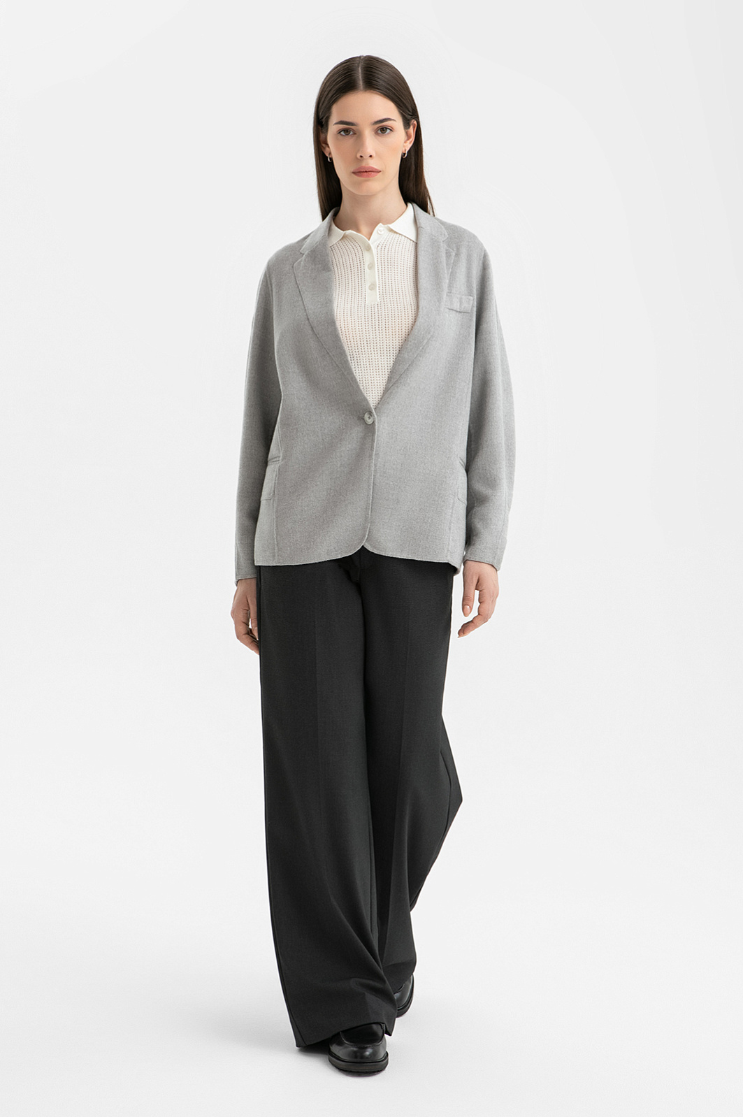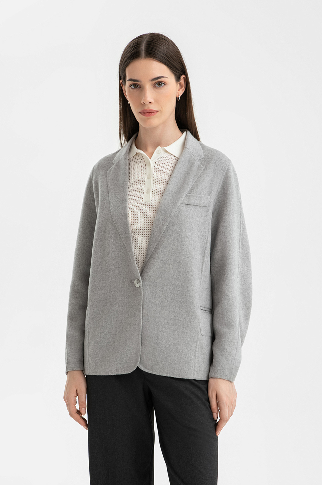 Изысканный дизайнерский светло-серый пиджак KANZLER свободного кроя с объемными рукава из смесовой шерсти с мягким свободным кроем — находка для ценителей женственного стиля. Такая модель уместна и в деловых, и в повседневных романтичных образах. Широкий вырез визуально вытягивает силуэт. Лаконичная застёжка на одну пуговицу добавляет образу непринужденности. Объёмные рукава красиво драпируются и собираются на запястьях. Приятный на ощупь материал сохраняет естественное тепло тела, не допуская перегревания. Он сделан на основе натуральной шерсти с добавлением нейлона и вискозы — для износоустойчивости и практичности. Гладкая прочная подкладка (полиэстер и вискоза) облегчает надевание.