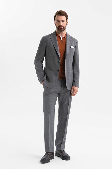 Стильный серый пиджак KANZLER из дорогой шерсти Супер 120S (100%) воплощает сдержанную роскошь и современный комфорт. Он легко адаптируется к разным сценариям жизни: органично смотрится в офисе и в более расслабленной атмосфере — на неформальных встречах и мероприятиях. Слегка приталенный крой хорошо очерчивает фигуру, формируя динамичный образ. Облегчённая конструкция с частичной подкладкой дарит телу свободу, а естественная линия плеча подчёркивает гармоничность силуэта. Две шлицы сзади обеспечивают свободу движения, а накладные карманы добавляют нотку неформальности. Ткань мягко облегает тело. Тончайшая шерсть Супер 120S поддерживает комфортную температуру, умеет «дышать», превращая повседневное ношение в приятный ритуал. Благодаря водоотталкивающей обработке материал всегда сохраняет безупречный вид. Параметры модели: рост 189, 102-80-99 Размер на модели: 50