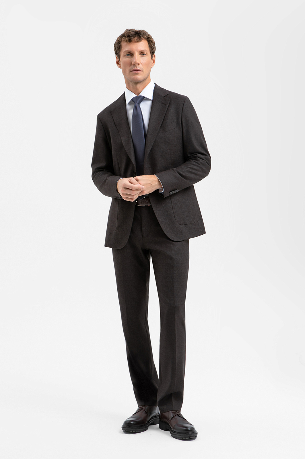 Однобортный пиджак KANZLER оттенка горького шоколада из дорогой костюмной шерсти Супер 100S — воплощение продуманного стиля, в котором объединились премиальное качество, современная элегантность, практичность и внимание к каждой детали. Изящный крой подчёркивает линии тела и придаёт образу лаконичность без излишней строгости. Аккуратные накладные карманы не утяжеляют силуэт и придают современное звучание. Устойчивая к сминанию ткань из тонкой дорогой шерсти (100%) сохраняет безупречный вид в течение всего дня, что делает пиджак идеальным вариантом для насыщенных дней, деловых поездок и встреч. Параметры модели: рост 188, 97-82-92 Размер на модели: 50