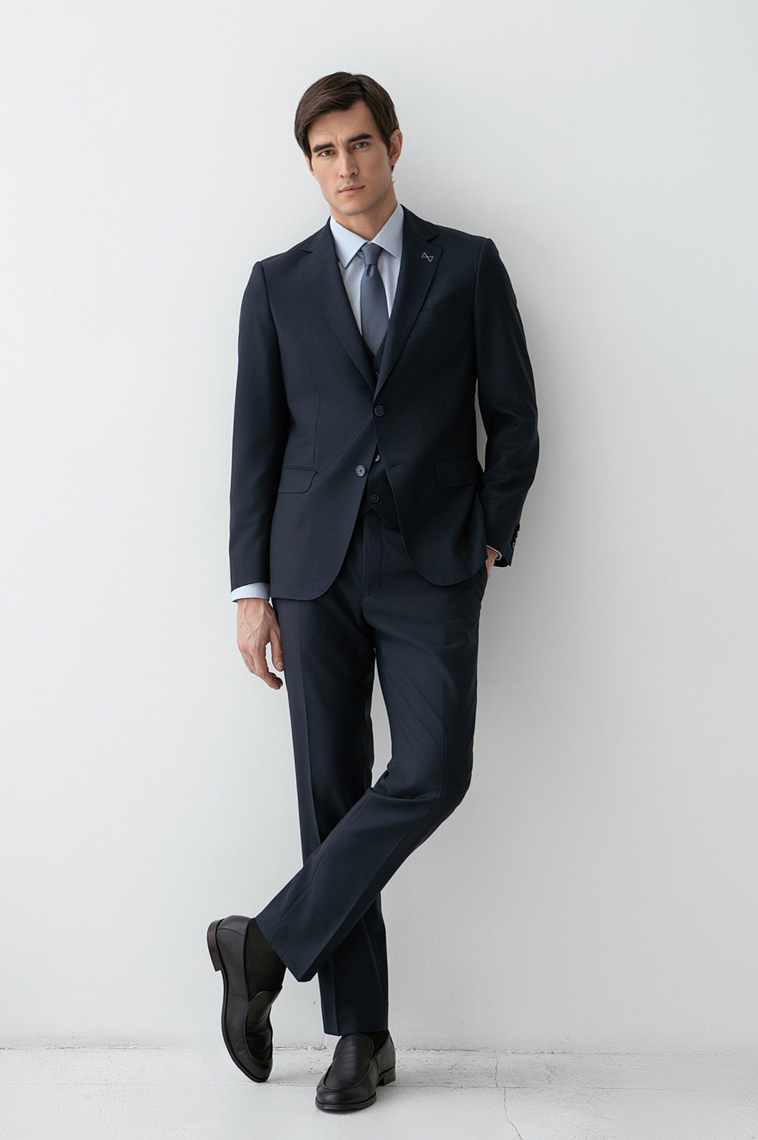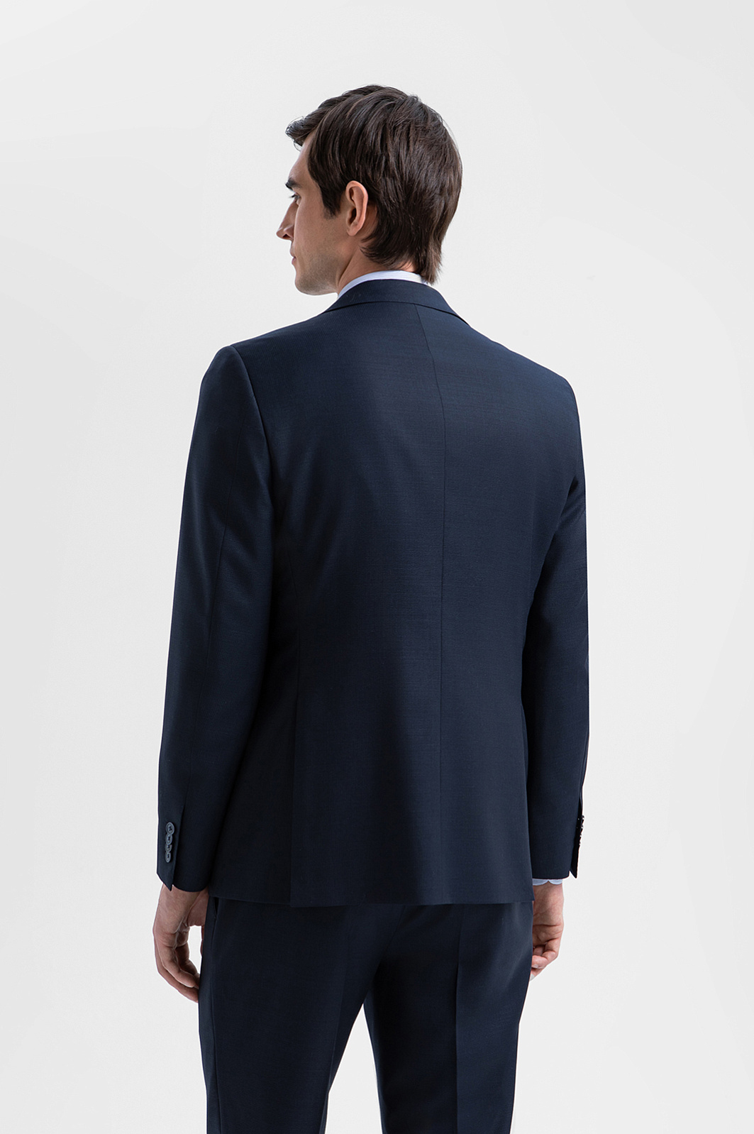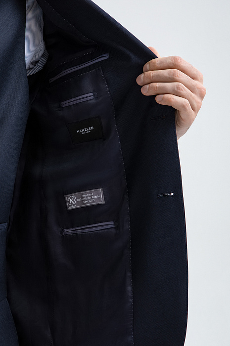 Пиджак KANZLER из тонкой мериносовой шерсти Супер 120S глубокого синего цвета подойдёт деловому мужчине, для которого элегантность — естественное состояние. Зауженный силуэт подчёркивает фигуру, сохраняя свободу движений. Нагрудный карман с листочкой и нижние карманы с аккуратными клапанами поддерживают классические традиции. Небольшая вышитая фирменная бабочка на лацкане — сдержанный акцент, который добавляет образу изысканность и нарядность. Ткань из тонкой гипоаллергенной шерсти мериноса мягко облегает тело, создавая ощущение естественной роскоши. Её суперсила — устойчивость к сминанию. Подкладка, выполненная из прочного гладкого полиэстера и воздухопроницаемой вискозы, обеспечивает лёгкое скольжение при надевании и безупречную посадку.