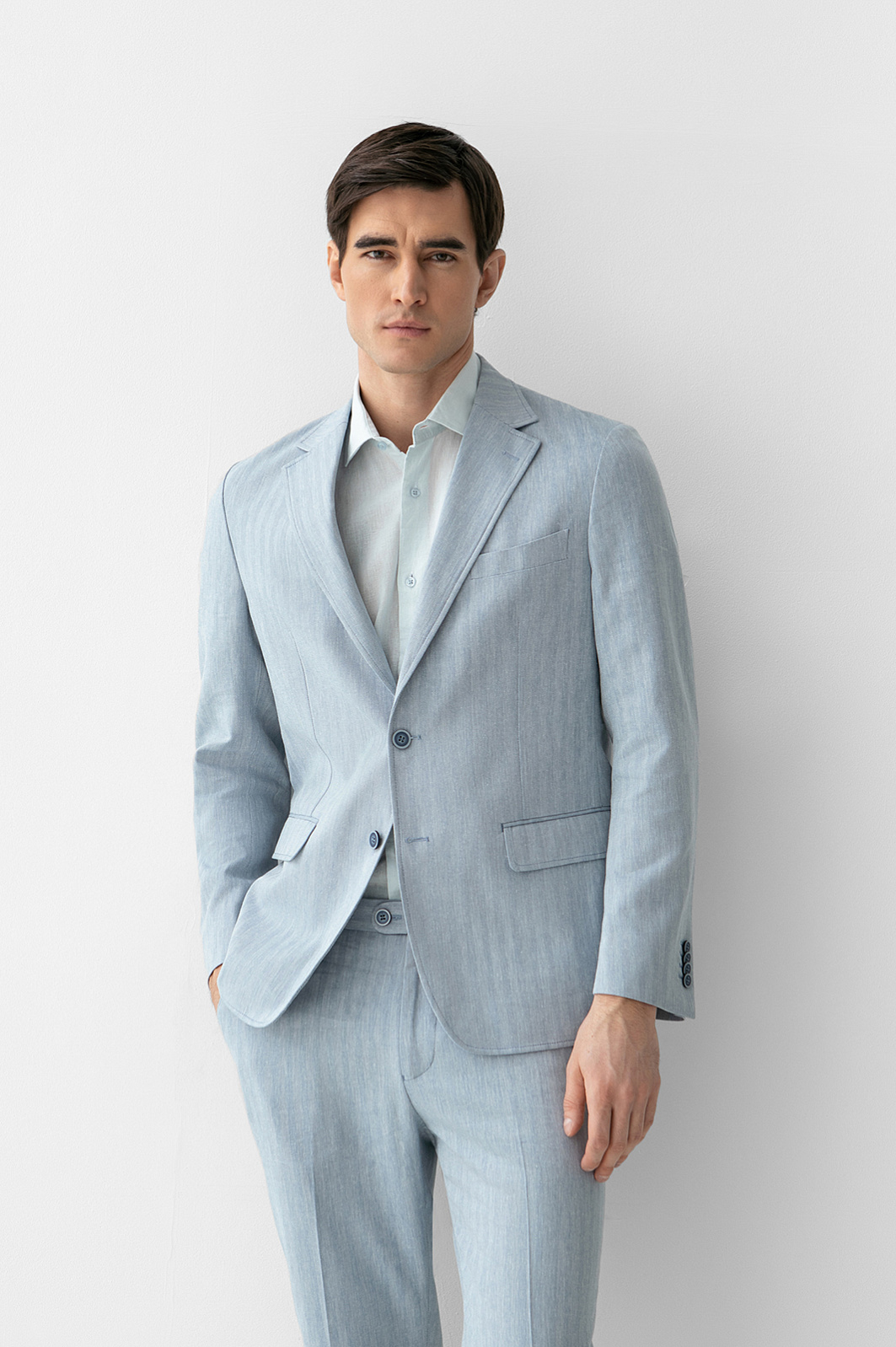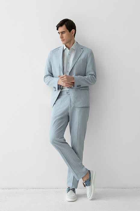 Пиджак из хлопка, льна и вискозы, цвет голубой, цена 26 990 руб. - купить в интернет-магазине KANZLER