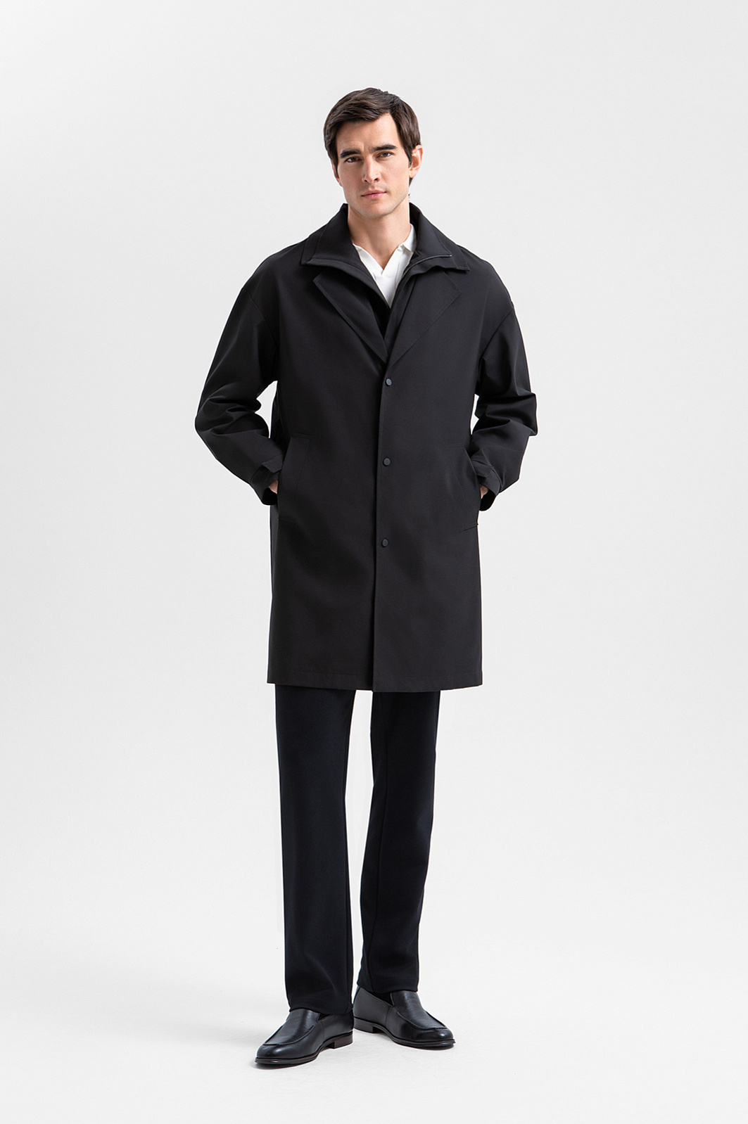 Плащ однобортный с манишкой и водоотталкивающей обработкой, цвет черный, цена 29 990 руб. - купить в интернет-магазине KANZLER