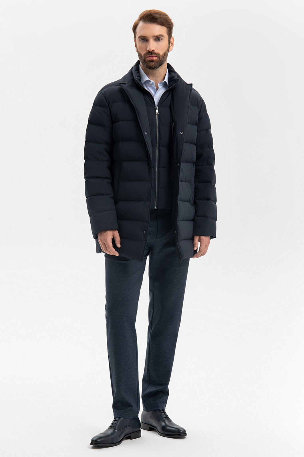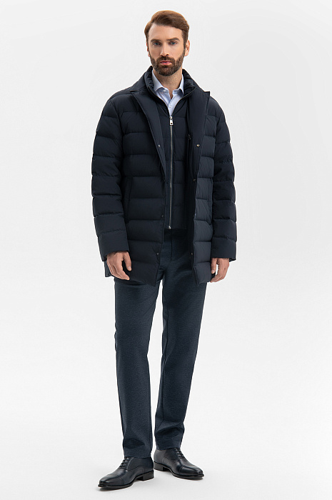 Пуховик со съемной манишкой и водоотталкивающей обработкой, цвет синий, цена 26 990 руб., код 270058 - купить в Тюмени в интернет-магазине KANZLER