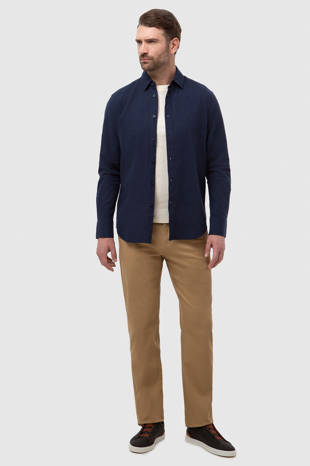 Классная рубашка с добавлением льна, сидит как влитая.