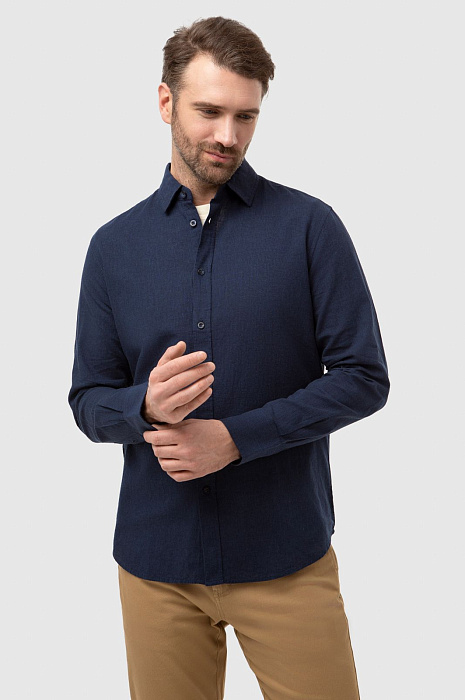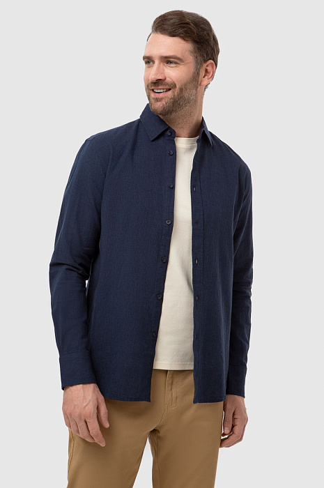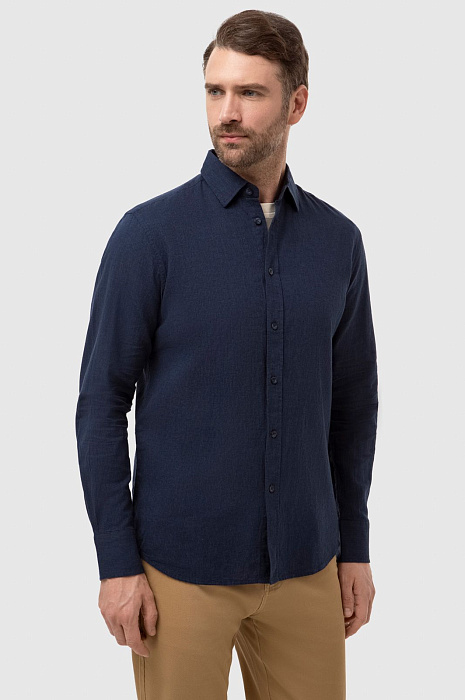 Рубашка изо льна и хлопка, цвет синий, цена 6 990 руб., код 266935 - купить в Тюмени в интернет-магазине KANZLER