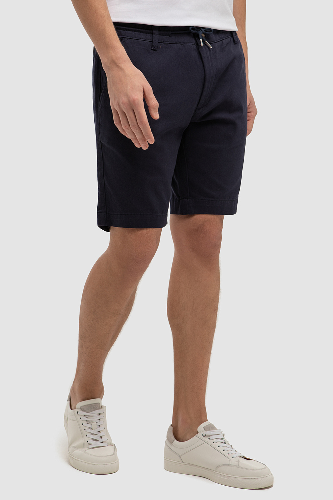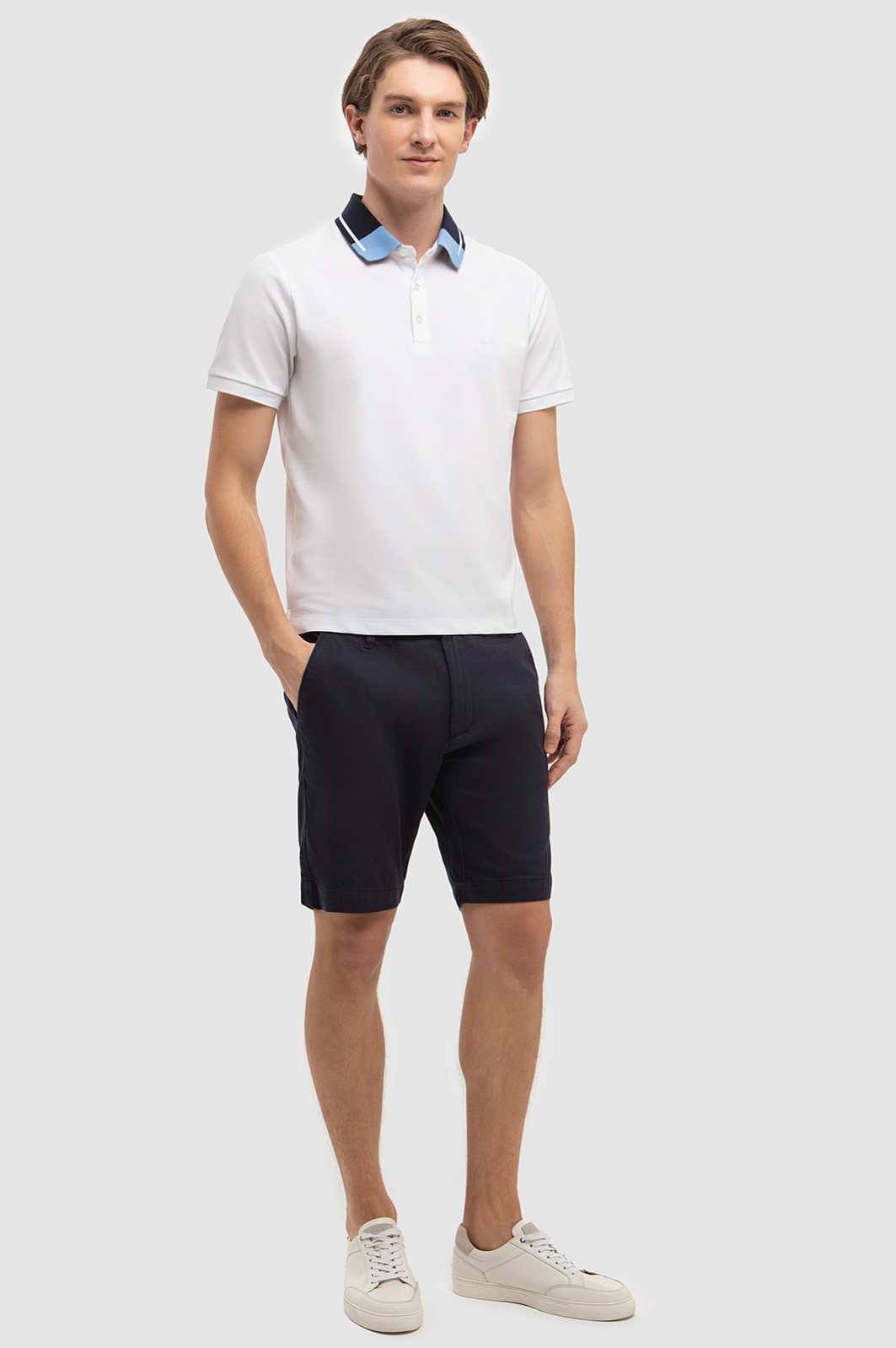 Универсальные прямые шорты KANZLER длиной чуть выше колена сшили из мягкого эластичного хлопка, поддерживающего хорошую циркуляцию воздуха. Материал получился одновременно комфортным, гипоаллергенным и экологичным. Благодаря посадке на кулиске модель комфортно садится на фигуре и не сковывает движения. Для важных мелочей предусмотрели карманы, а правую брючину дополнили патчем с логотипом бренда из натуральной кожи в тон фурнитуры. Привлекательное сочетание белого поло с контрастными деталями и синих шорт - пример современного стиля в большом городе. Белые кожаные кеды превосходно завершат образ. Параметры модели: рост 191, 97-77-99 Размер на модели: 50