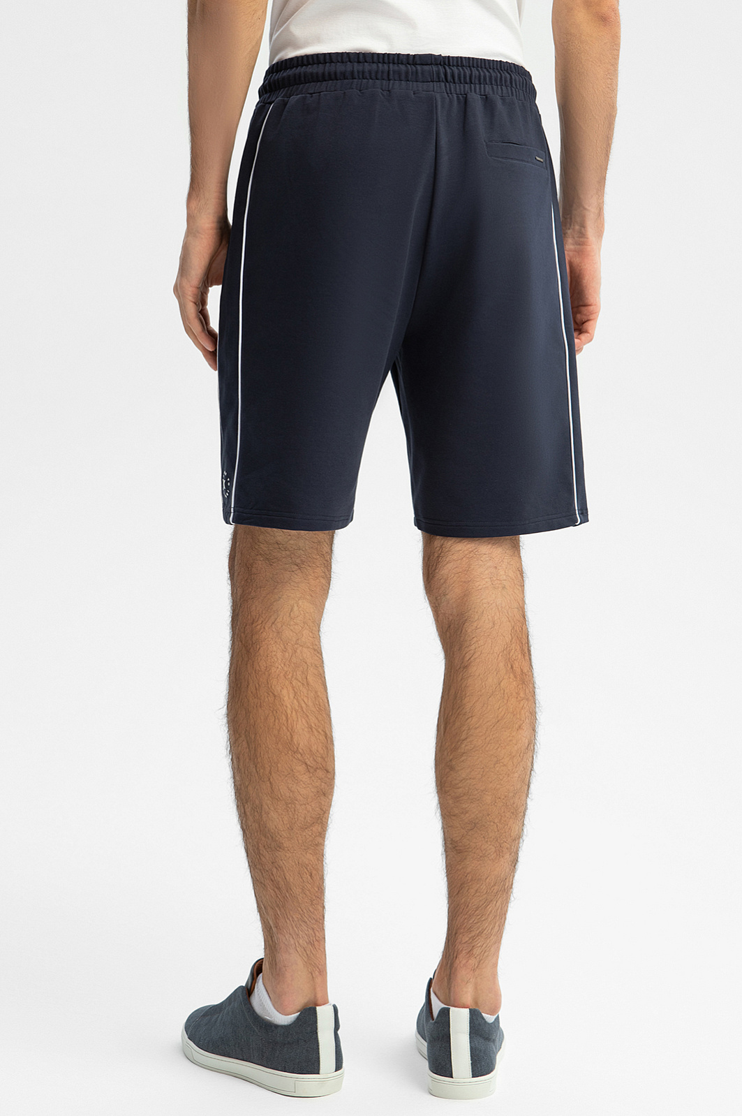 Удобные шорты KANZLER глубокого синего цвета на кулиске незаменимы для активного отдыха. Формула комфорта этой модели: свободный крой, широкая резинка, спортивная кулиска для регулирования объема талии и мягкая ткань из хлопка. Спортивный характер подчеркивают тонкие вертикальные боковые полоски и небольшой принт со слоганом. Тактильно приятный смесовой материал прослужит долго, не теряя первоначального вида. В составе: воздухопроницаемый гипоаллергенный хлопок (66%), износоустойчивый полиэстер и эластичный спандекс. Параметры модели: рост 192, 101-76-97 Размер на модели: M