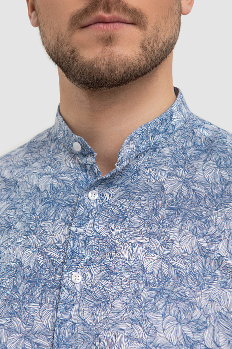 Красивая сорочка KANZLER изо льна и хлопка с коротким рукавом напоминает стиль персонажей сериала «Белый лотос». Модель подходит для расслабленного курортного отдыха, дегустации вин и морских прогулок. Свободный крой не сковывает движений. Натуральная ткань, украшенная синим растительным принтом, выглядит роскошно и благородно. Волокна льна создают ощущение прохлады, а мягкий гипоаллергенный хлопок поддерживает приятную для тела температуру и отводит влагу. Параметры модели: рост 187, 100-81-97 Размер на модели: 40