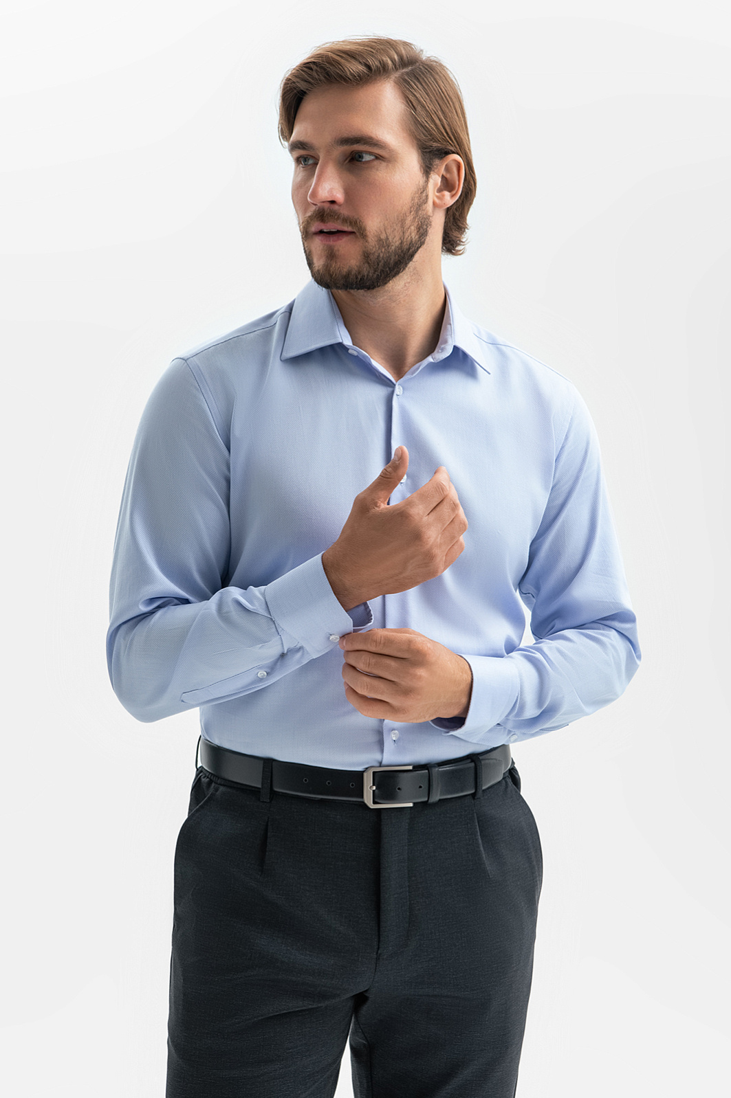 Сорочка из хлопка, устойчивого к сминанию, цвет голубой, цена 5 990 руб., код 268622 - купить в Тюмени в интернет-магазине KANZLER