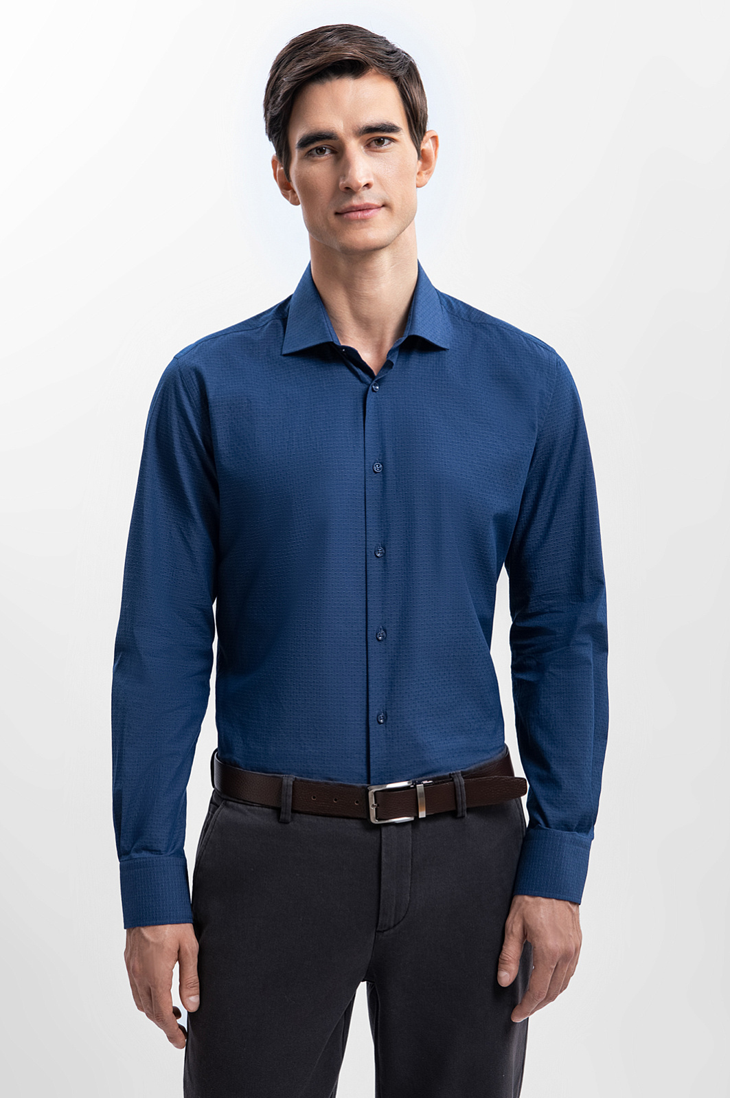 Темно-синяя сорочка KANZLER сшита из роскошной фактурной хлопковой ткани, созданной Carlo Bassetti — знаменитой текстильной итальянской мануфактурой с полуторавековой историей. Глубокий насыщенный темно-синий цвет, воплощенный в полуприлегающем крое, придает образам в стиле кежуал мужественность. Комфорт и свежесть на целый день обеспечивает мягкая легкая ткань, произведенная из гипоаллергенного воздухопроницаемого хлопка. Нежные легкие натуральные волокна создают тонкую воздушную прослойку и поддерживают приятную для тела температуру. Параметры модели: рост 192, 101-76-97 Размер на модели: 40
