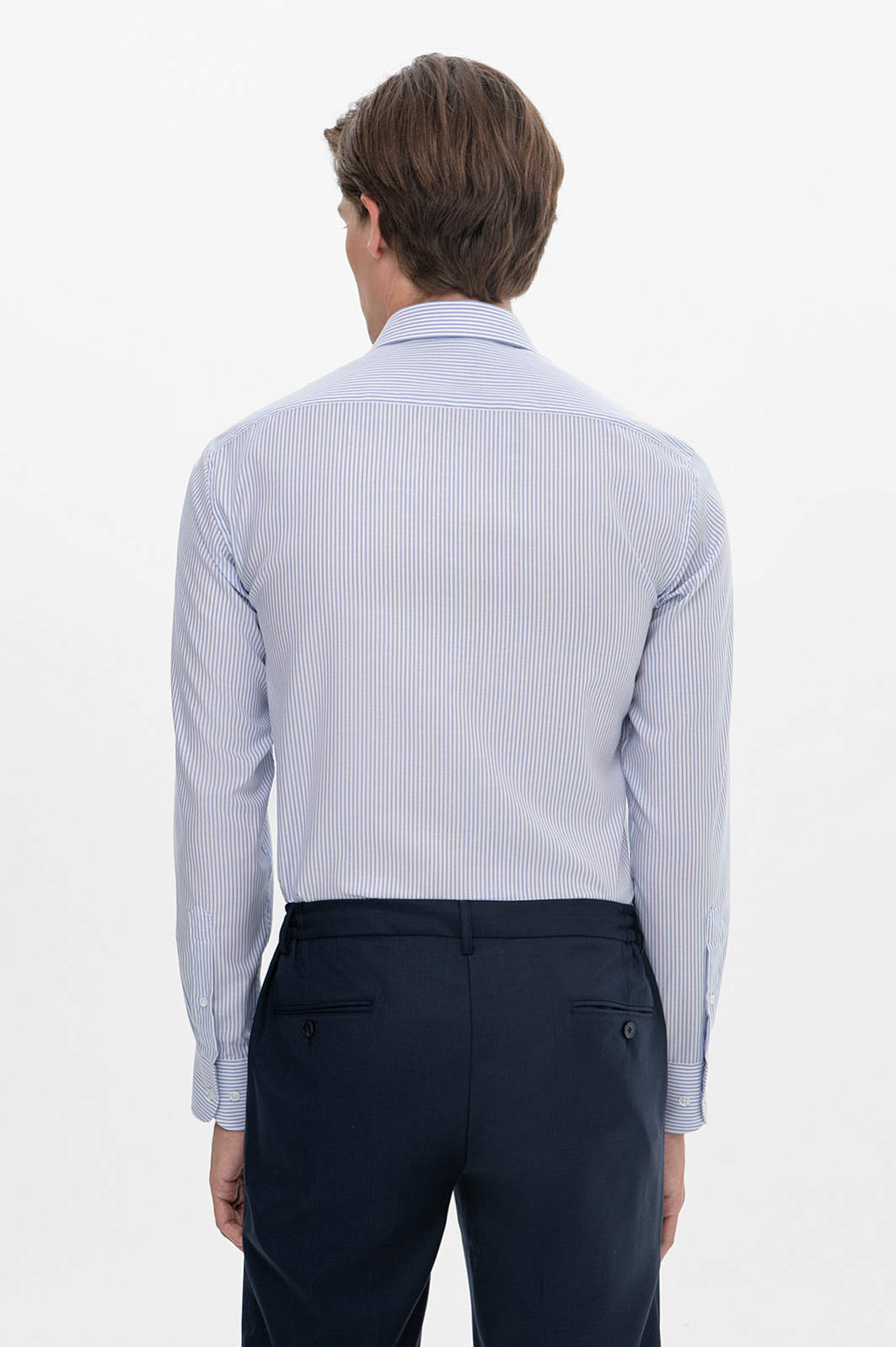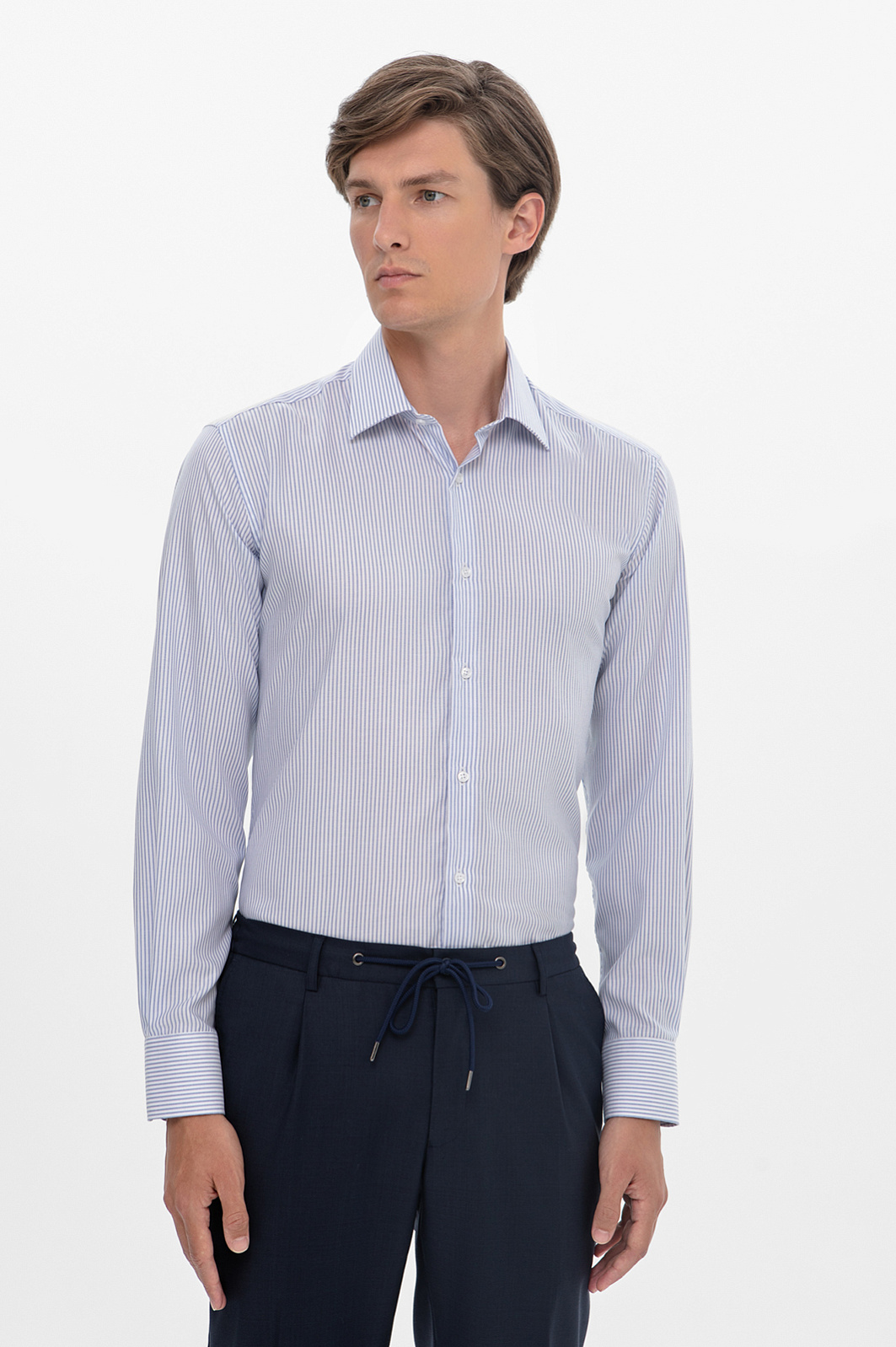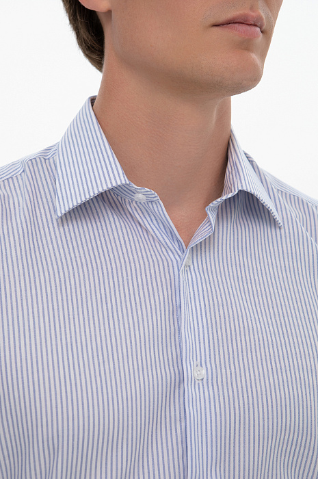 Сорочка из хлопка в полоску, легкая в уходе, цвет голубой, цена 5 990 руб., код 268628 - купить в Тюмени в интернет-магазине KANZLER