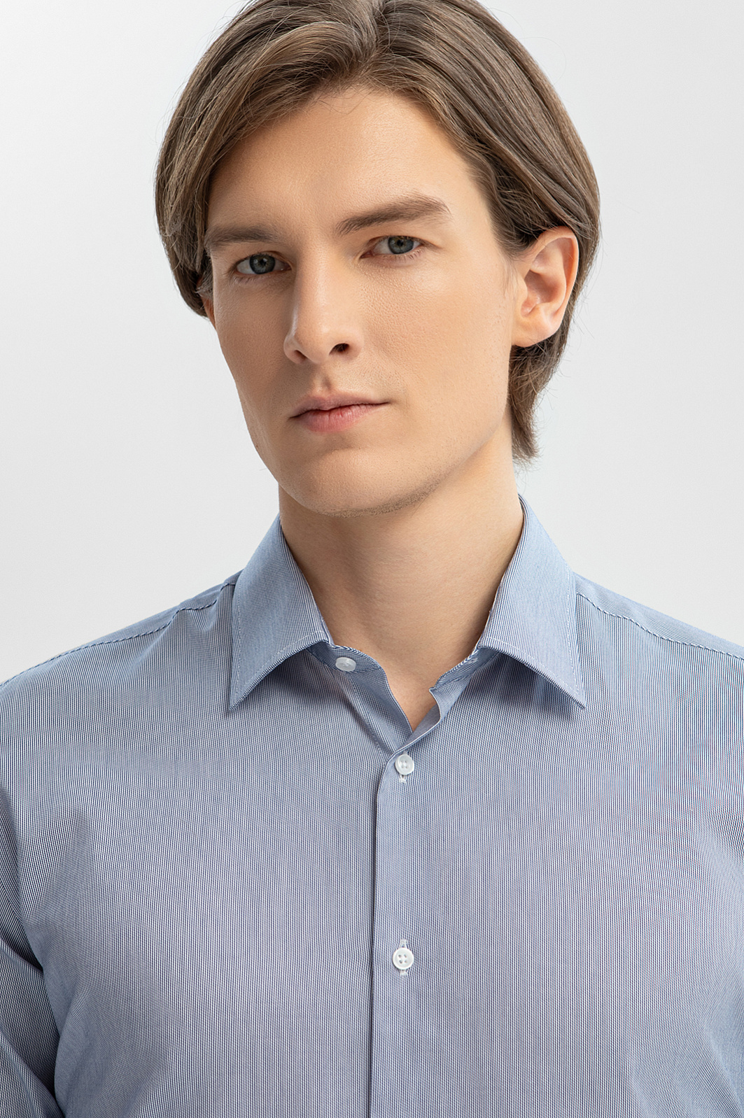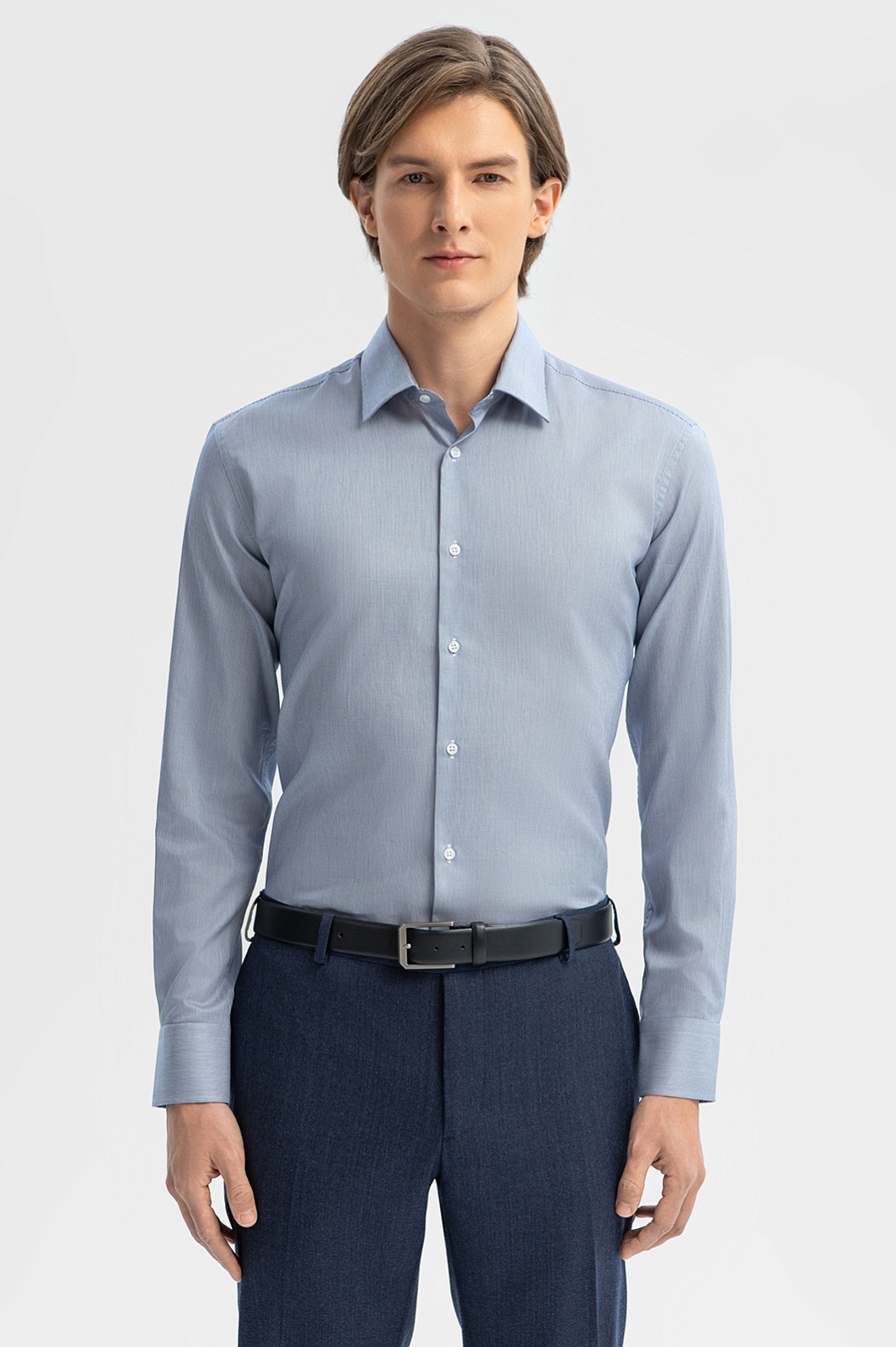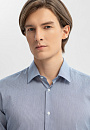 Созданная из премиальной австрийской ткани Getzner, эта голубая сорочка в полоску станет выбором номер один для создания сдержанного, но выразительного образа. Приталенный крой подчеркивает фигуру, создавая строгий и стильный силуэт. 100% хлопок обеспечивает невероятную мягкость, дышащие свойства и комфорт даже в самый активный день. Деликатный узор в тонкую полоску – идеальное сочетание классики с актуальными трендами весенне-летнего сезона. В комплекте с пиджаком или без него, сорочка подходит для любого случая — будь то деловая встреча, романтический ужин или выход на прогулку. Параметры модели: рост 191, 97-77-99 Размер на модели: 50