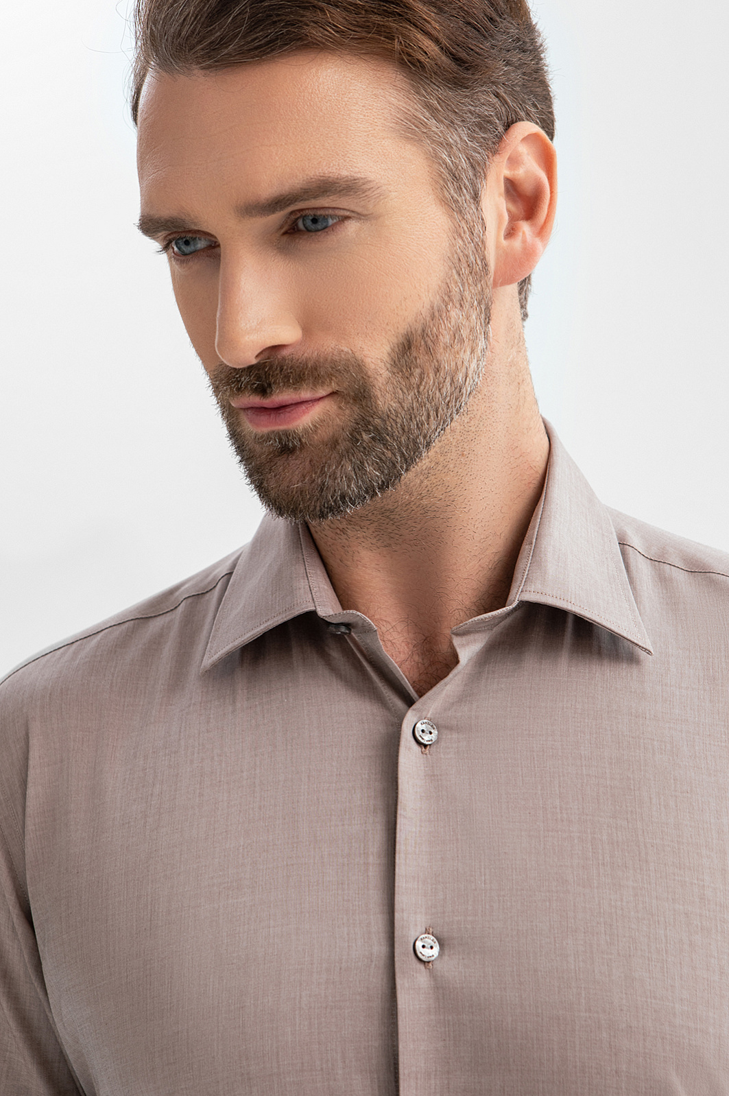 Бежевая сорочка из хлопка и лиоцелла, цвет бежевый, цена 6 990 руб., код 269312 - купить в Тюмени в интернет-магазине KANZLER