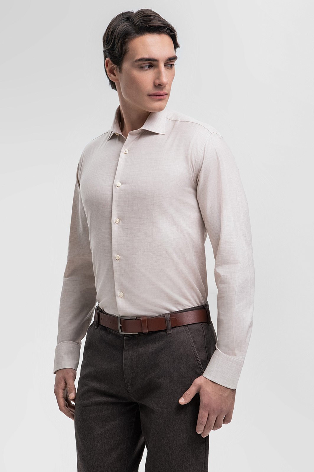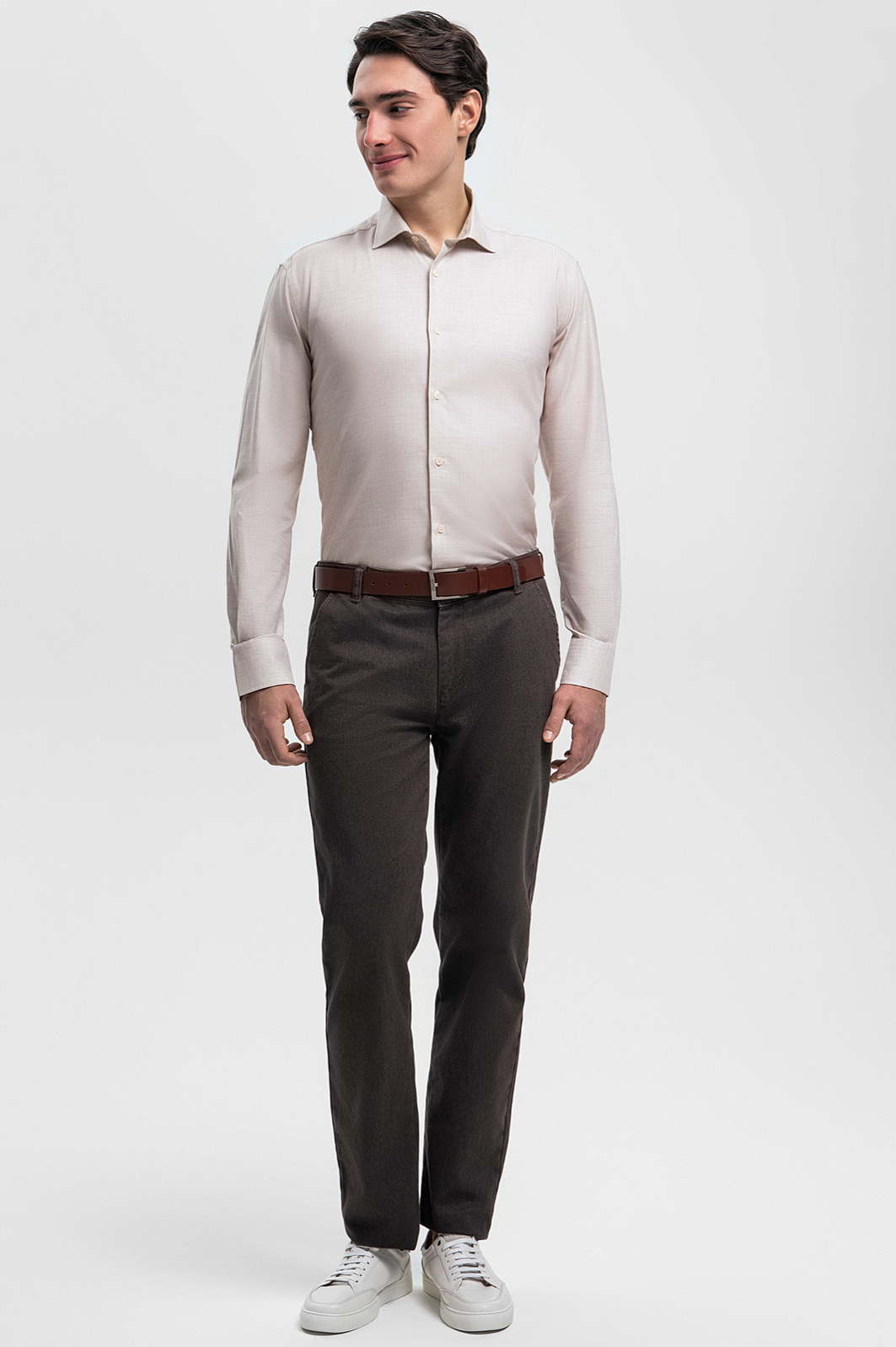 В бежевой сорочке KANZLER нашли отражение проверенные временем традиции и современные технологии. Уникальный материал сочетает мягкость хлопка и особые свойства тенсела — устойчивость к сминанию и великолепную воздухопроницаемость. Приталенный крой обеспечивает идеальную посадку, подчеркивая достоинства фигуры. Спокойный бежевый оттенок делает сорочку универсальным элементом гардероба, позволяя создавать образы для самых разных случаев – от деловых до повседневных. Параметры модели: рост 190, 103-83-99 Размер на модели: 40