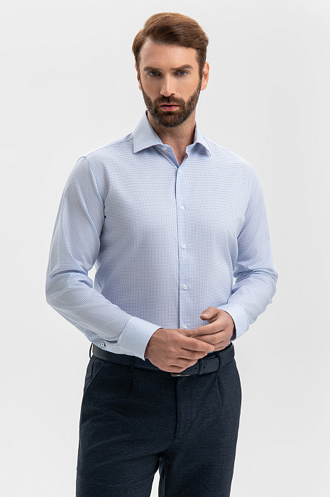 Сорочка из хлопка, цвет голубой, цена 7 990 руб., код 270485 - купить в Тюмени в интернет-магазине KANZLER