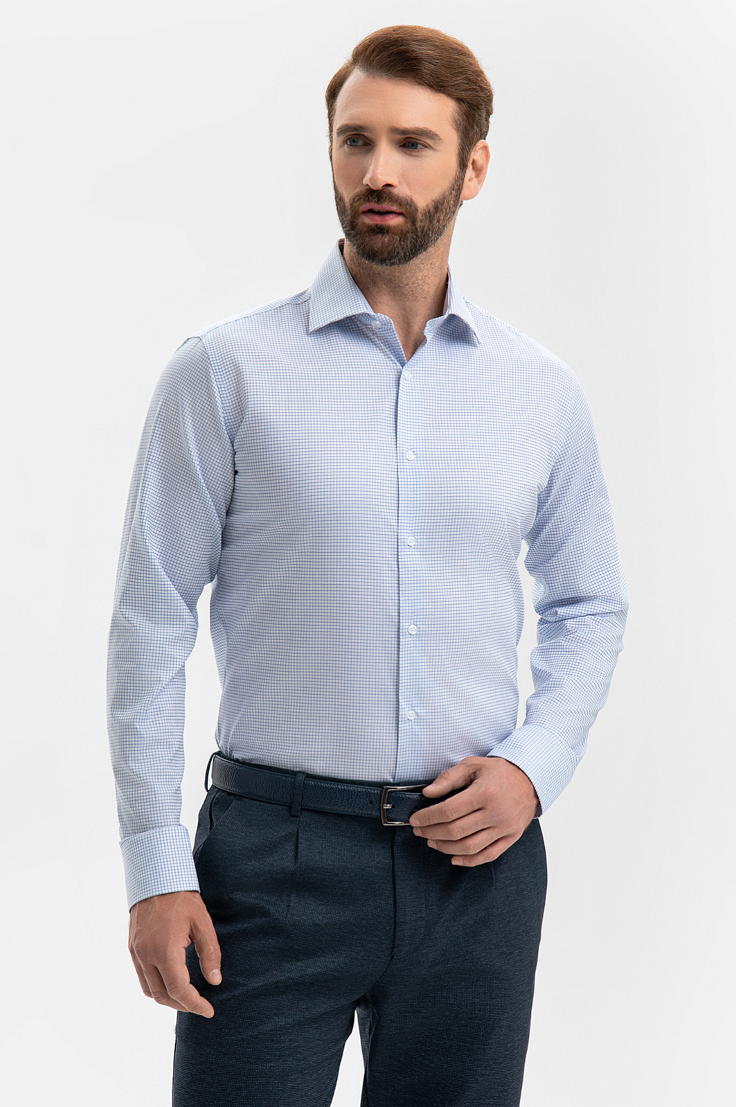 Белая сорочка KANZLER в тонкую светло-голубую клетку — современная интерпретация делового стиля, в котором уместны сдержанность и индивидуальность. Универсальный дизайн позволяет варьировать степень строгости, сочетая сорочку с классическими и неформальными брюками. Приталенный силуэт подчёркивает линию плеч и талию, создавая собранный и уверенный образ. Сорочка выполнена из 100% хлопка — лёгкого, дышащего и гипоаллергенного материала, который сохраняет ощущение свежести в течение всего дня. Это вещь, к которой приятно возвращаться снова и снова. Параметры модели: рост 189, 102-80-99 Размер на модели: 40