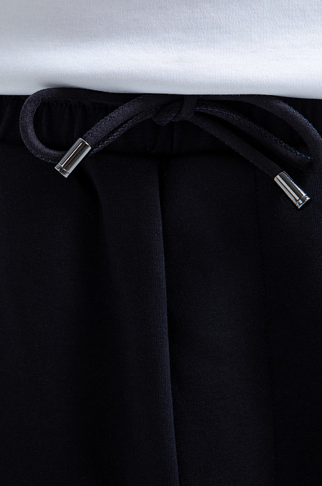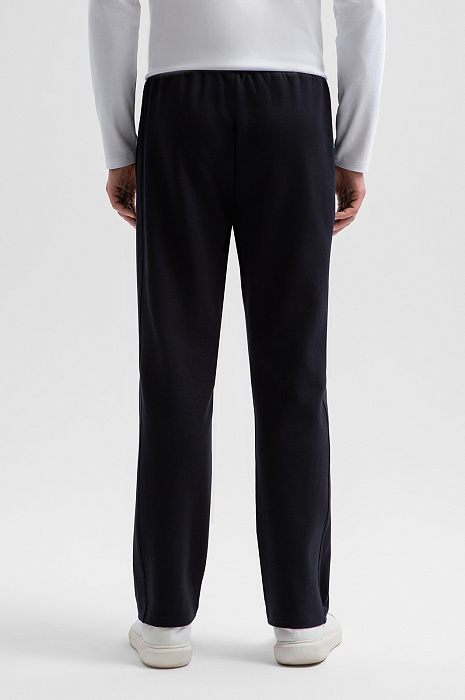 Тёмно-синий костюм KANZLER принадлежит и миру спорта, и уличному стилю. Миссия выполнима: в нём можно тренироваться, гулять и предаваться ничегонеделанию дома. Комплект состоит из толстовки на молнии и свободных брюк на кулиске. Мягкий трикотаж сочетается с вставками из полиэстера, которые подчёркивают современный характер костюма и делают его структуру выразительной. В составе трикотажа — натуральный гипоаллергенный хлопок, который поддерживает ощущение свежести и сохраняет естественное тепло тела. Добавление полиэстера и эластана придаёт материалу прочность и пластичность.