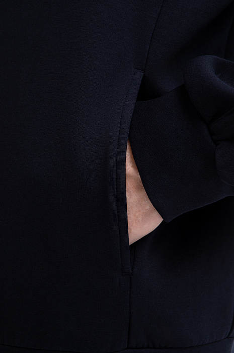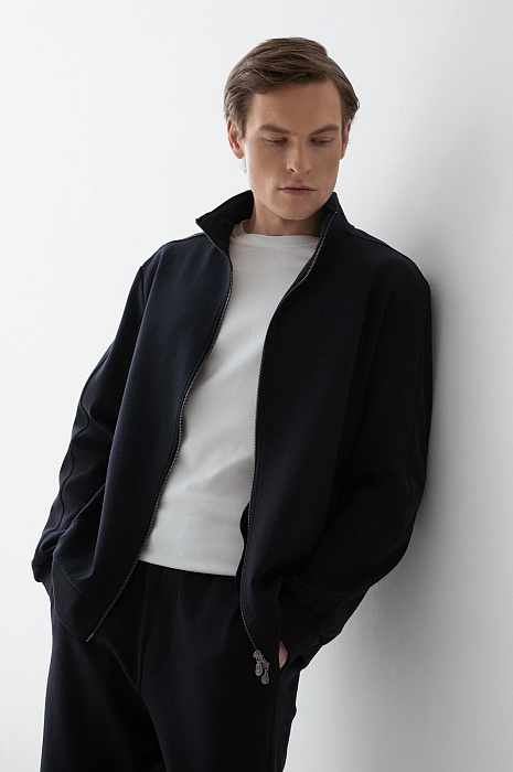 Тёмно-синий костюм KANZLER из хлопкового трикотажа с вставками из полиэстера — универсальный комплект для активного отдыха, прогулок и спокойных уикендов на природе. Костюм состоит из толстовки на молнии, украшенной вышитым логотипом и фирменным шильдиком, и свободных удлинённых шорт на кулиске. Комплект сшит из мягкого смесового хлопка. Его натуральные гипоаллергенные волокна поддерживают ощущение свежести и сохраняют естественное тепло тела. Добавление полиэстера и эластана придаёт материалу прочность и пластичность.