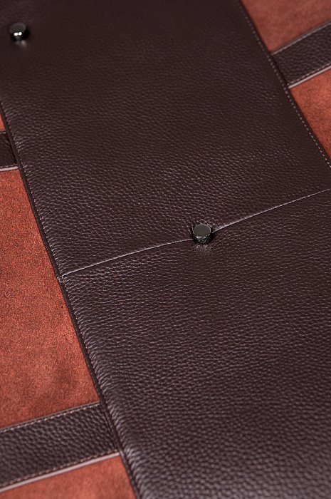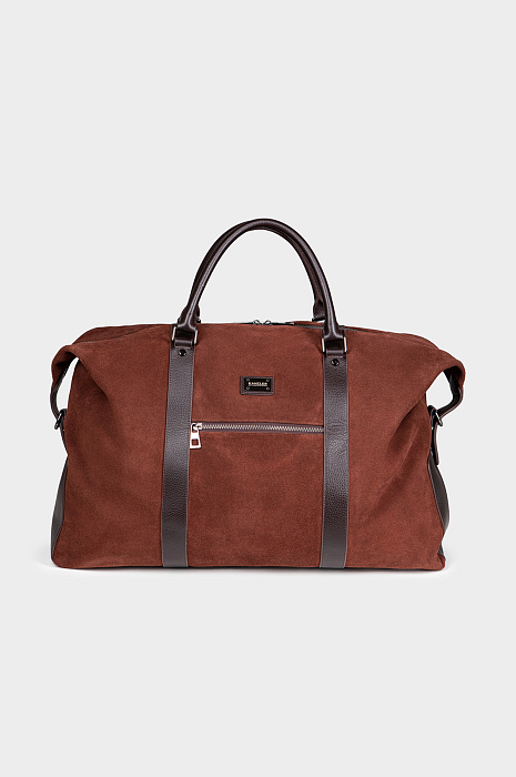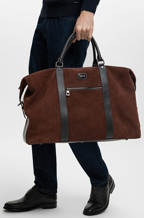 Роскошная дорожная сумка из натуральной кожи и замши KANZLER — больше, чем ручная кладь. Это добротная и стильная вещь, которая будет гармонично смотреться в первом классе самолета и произведет наилучшее впечатление. В сумке из мягкой замши и зерненой кожи превосходной выделки с фурнитурой из блестящего хромированного металла сочетаются оттенки молочного и горького шоколада. Для удобства переноски модель снабжена кожаными ручками и широким текстильным плечевым ремнем. Пять металлических ножек защищают дно от загрязнений и повреждений. Сбоку имеется карман на молнии для мелочей. Внутри — просторное отделение для вещей с подкладкой из крепкой практичной черной ткани, а также внутренний карман на молнии — для документов, карт и денег.