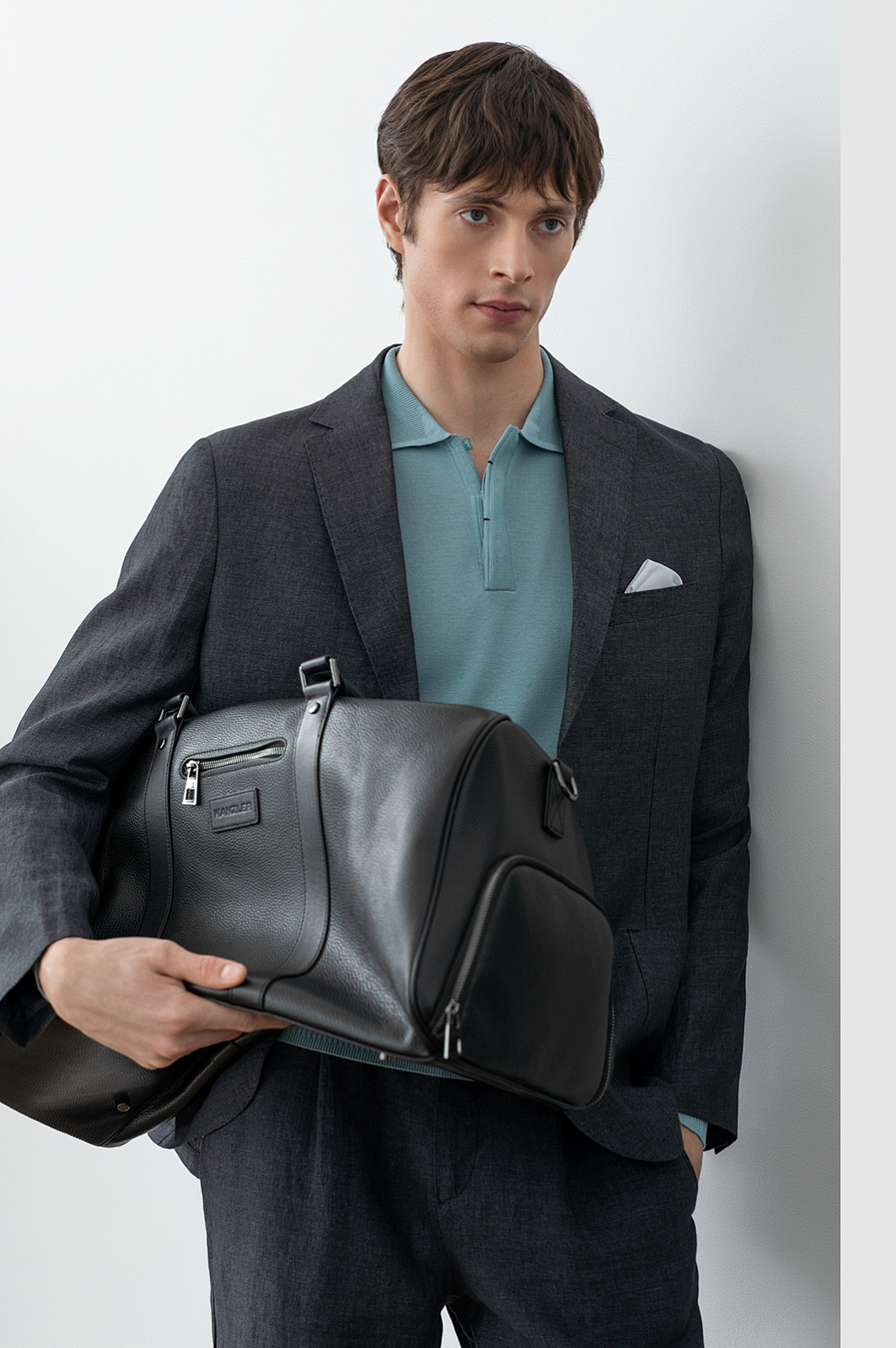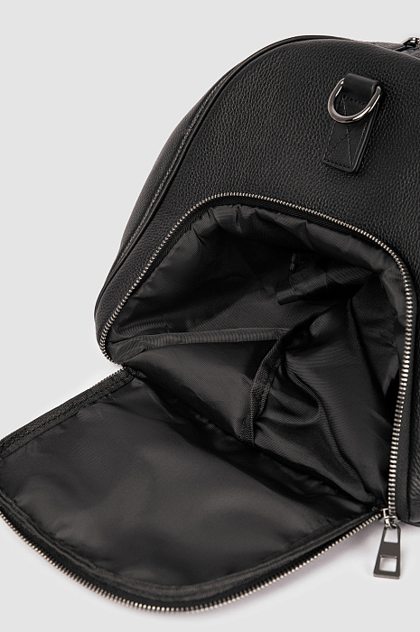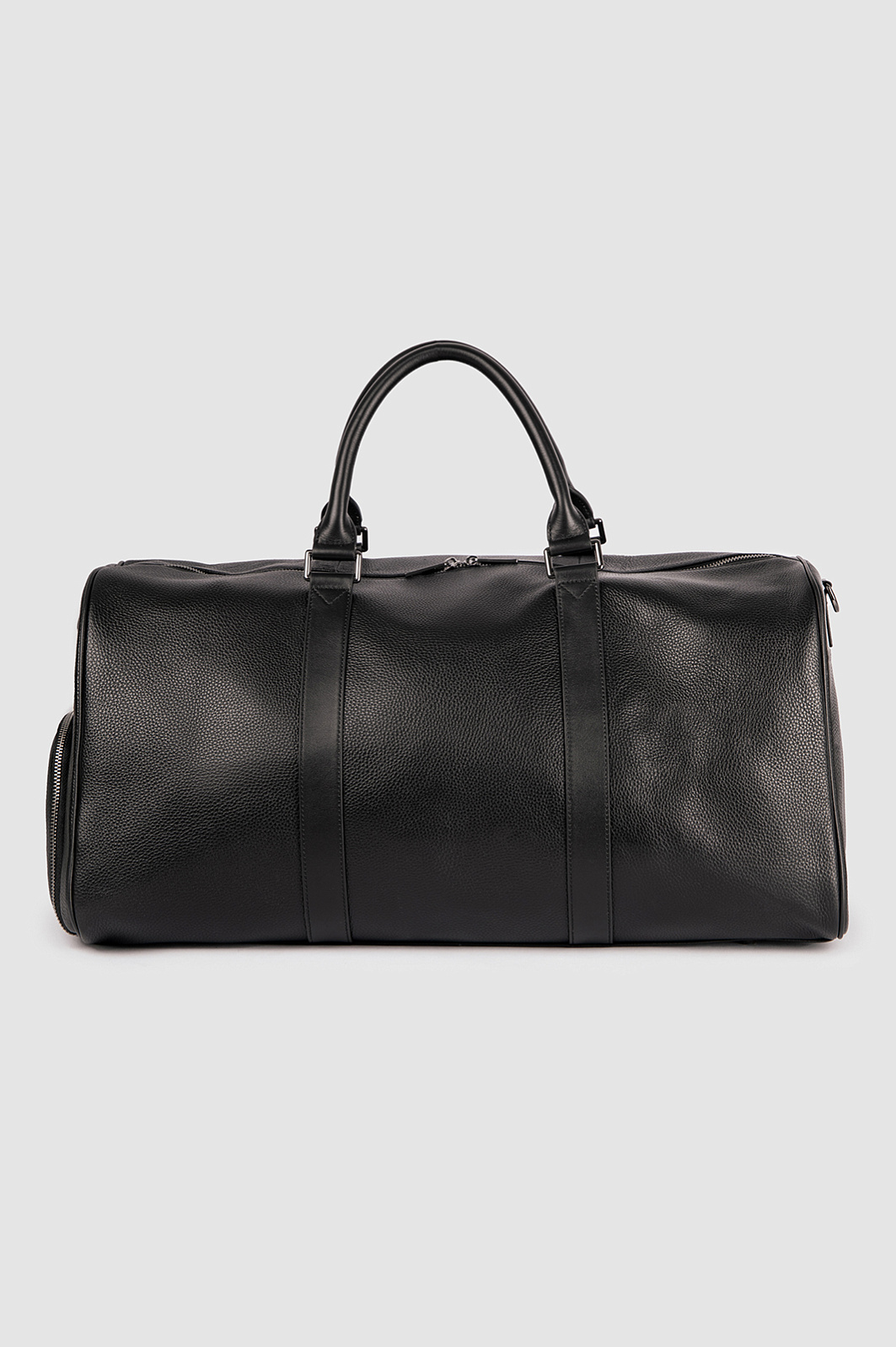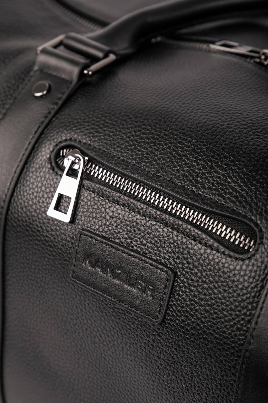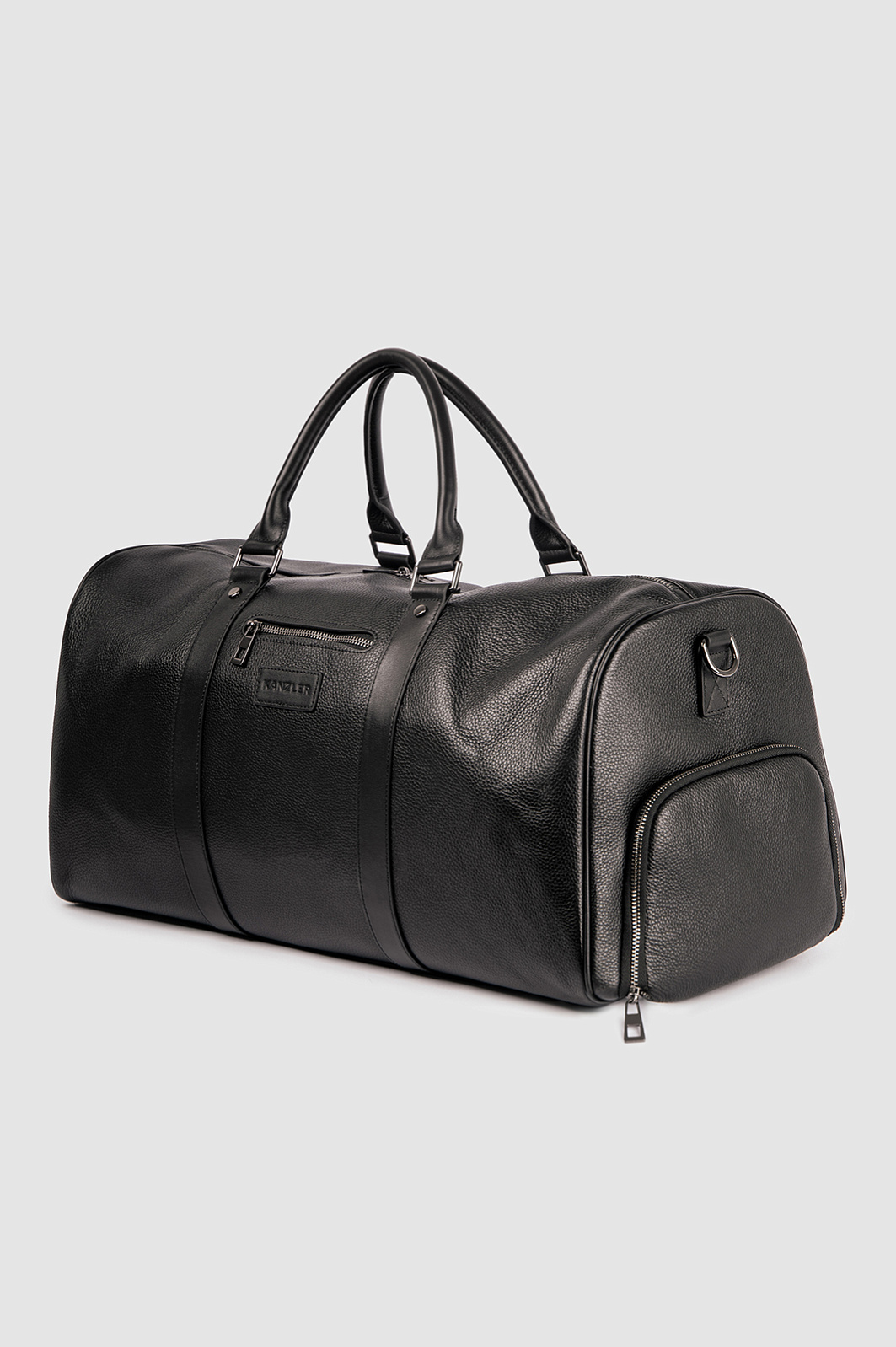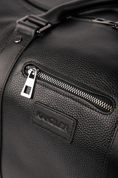 Черная сумка KANZLER среднего размера из натуральной зернистой кожи с тисненым логотипом — стильный и эффектный аксессуар. Модель современного дизайна оснащена ремнями из гладкой кожи и внешними карманами на молнии. Ее можно носить за ручки или на плечевом ремне. Идеальный вариант для коротких поездок. Натуральная кожа неприхотлива в уходе и хорошо выдерживает испытание временем.