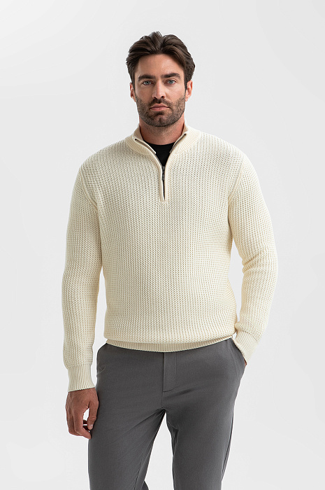 Свитер из хлопка, цвет молочный, цена 7 990 руб., код 270257 - купить в Тюмени в интернет-магазине KANZLER
