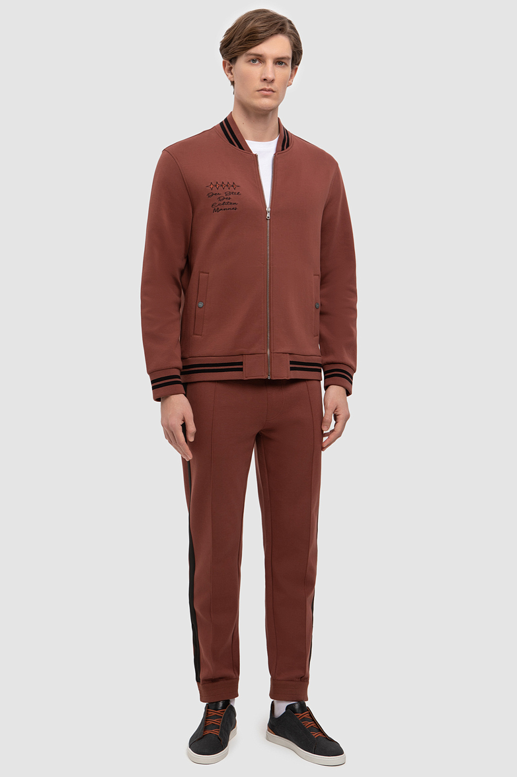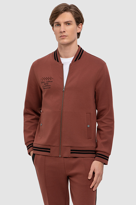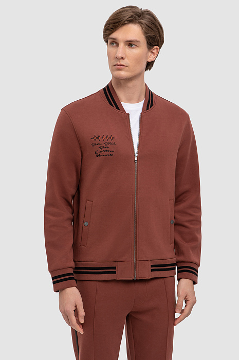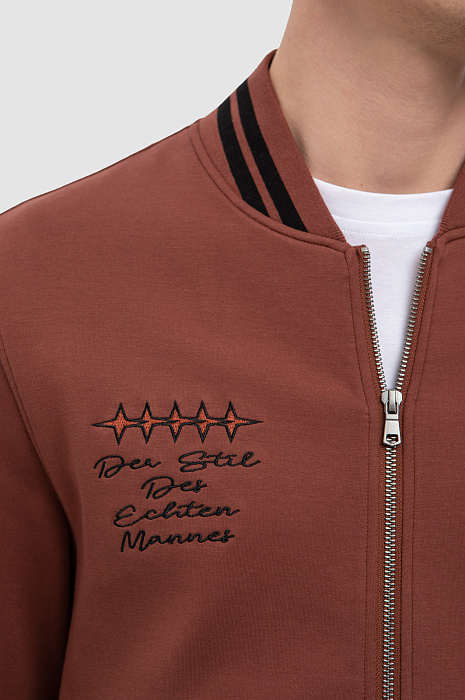 Толстовка KANZLER прямого силуэта на молнии удачно впишется в повседневный мужской гардероб. Одновременно умиротворяющий и насыщенный терракотовый оттенок отлично подойдет для образов в стиле кежуал в сочетании с классическим темным денимом, а также гармонично дополнит спортивный стиль. Для пошива толстовки с двумя карманами использовали плотный хлопковый трикотаж на основе мягкого, дышащего хлопка, поэтому модель сможет заменить ветровку в прохладный день. Натуральный хлопок хорошо пропускает воздух и при этом сохраняет тепло, а прочные синтетические волокна и эластан обеспечивают износостойкость. Спереди изделие украсили небольшим принтом, брендированными кнопками и каллиграфической надписью, словно написанной от руки, а сзади - прорезиненным логотипом бренда. В качестве декора использовали контрастные полоски на воротнике и манжетах. Наши стилисты советуют дополнить образ базовой футболкой и джоггерами в таком же оттенке. Параметры модели: рост 191, 97-77-99 Размер на модели: M