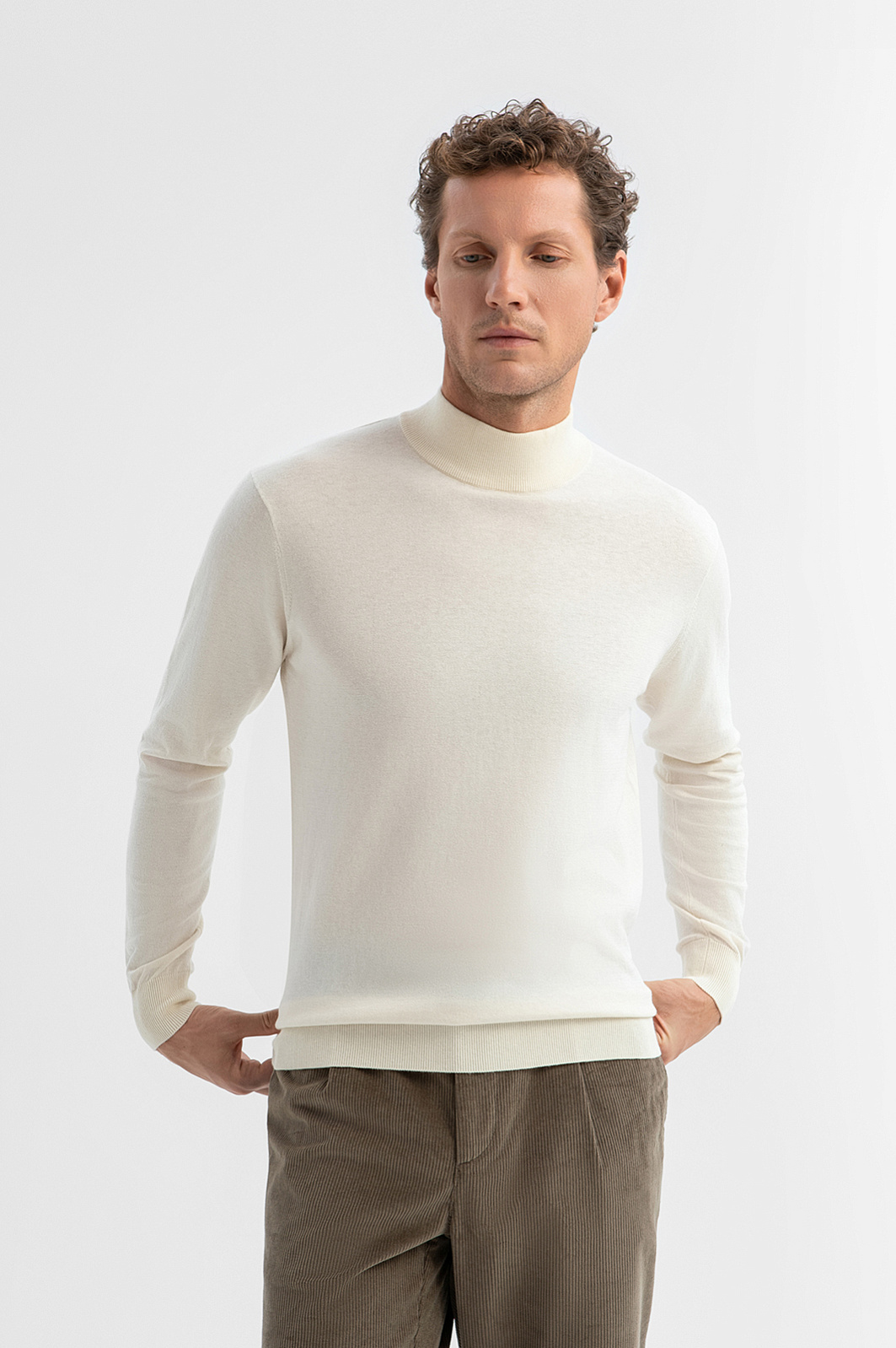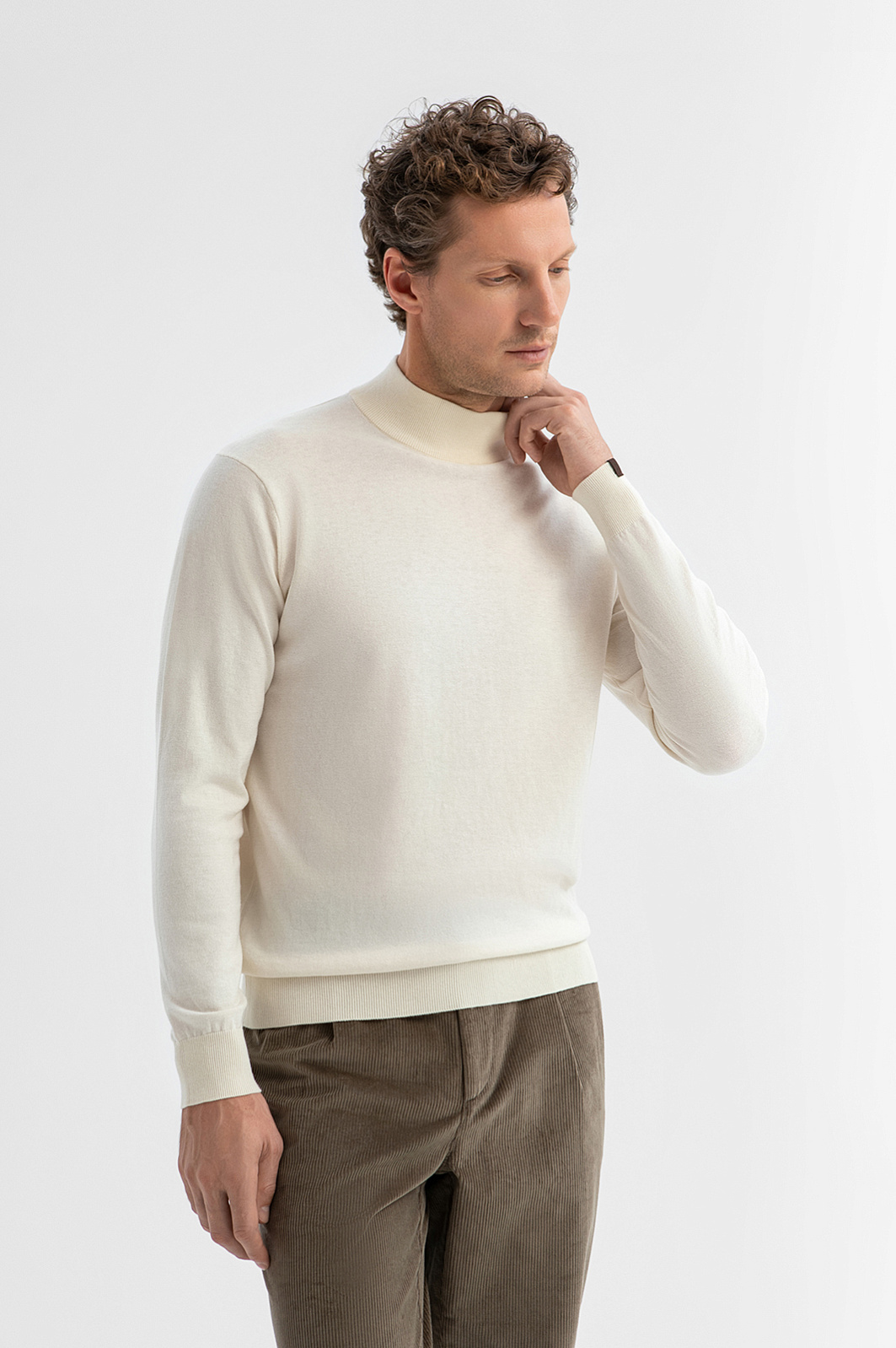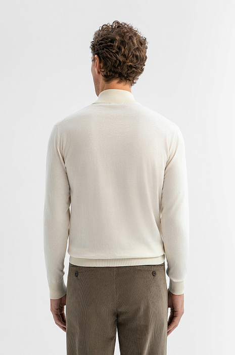 Водолазка KANZLER красивого сливочного оттенка из хлопка с добавлением кашемира — изысканная и стильная вещь, которую можно носить и в офис, и на выход. Ее элегантная простота легко адаптируется к стилю и настроению. Широкие трикотажные резинки на воротнике, манжетах и по низу обеспечивают прилегание краев и аккуратную посадку. Роскошная натуральная ткань — 95% гипоаллергенный хлопок и 5% нежнейший кашемир — обеспечивает мягкость, воздухопроницаемость и приятное прилегание к телу. Водолазка сохраняет форму, не перегревает и в холодные дни может надеваться под пиджак, плащ и пальто. Параметры модели: рост 188, 97-82-92 Размер на модели: M