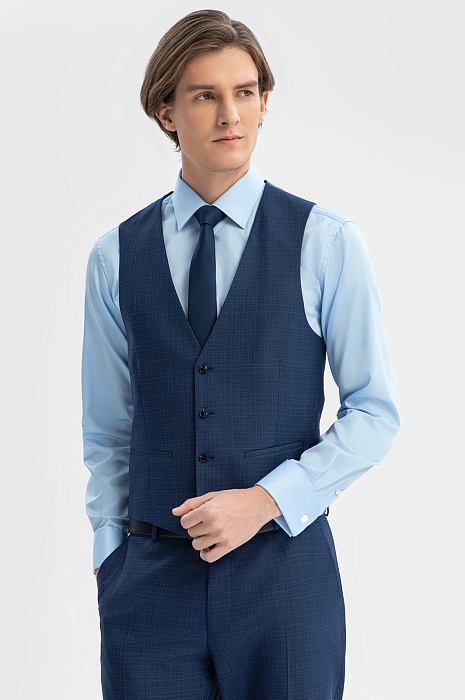 Элегантный синий жилет KANZLER из роскошной ткани (дорогая тонкая шерсть с индексом Супер 120S с добавлением хлопка и льна) — неотъемлемая часть костюма-тройки и самостоятельный элемент, который в неформальной обстановке может заменить пиджак и подходит для создания многослойных образов — с пальто, плащом или кардиганом. Благородная долговечная ткань с полотняным переплетением сделана из сертифицированной овечьей шерсти (90%), которая практически не мнется и способна восстанавливать форму. Воздушные гипоаллергенные волокна льна и хлопка в составе материала поддерживают оптимальную для тела температуру. Водоотталкивающая обработка сохраняет аккуратный вид в переменчивых погодных условиях. Параметры модели: рост 191, 97-77-99 Размер на модели: 50